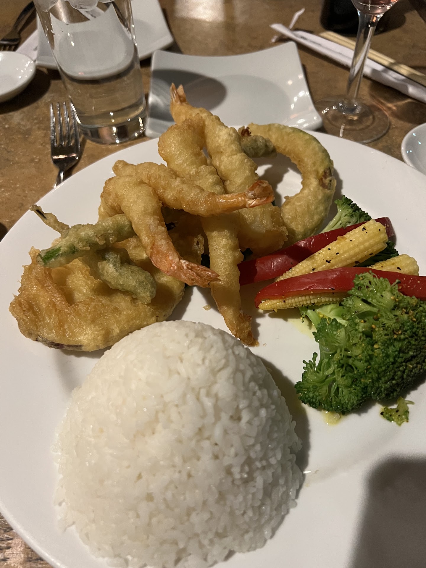 I go during their lunch hours more than their dinner. I order the same thing Everytime. Lunch Deluxe B which is their sushi lunch. You get a variety of fresh nigiri that's plump and decent, a California roll where knew bite is a full mouthful. The giant plate also includes a salad with home made Japanese dressing, full portion shrimp and vegetables Tempera, and their steamed Asian style vegetable. Majority of the time, I take half of it home to enjoy later.