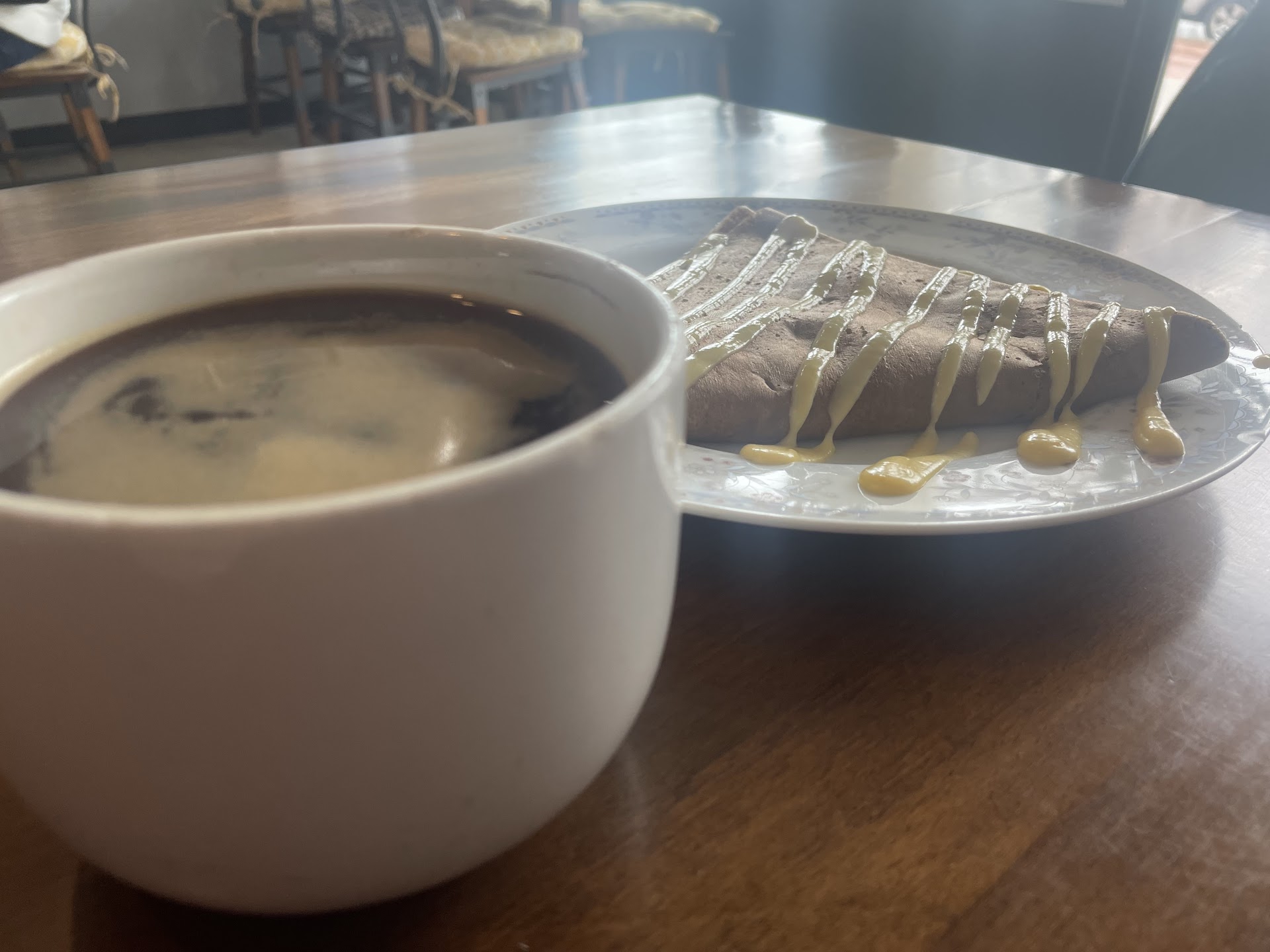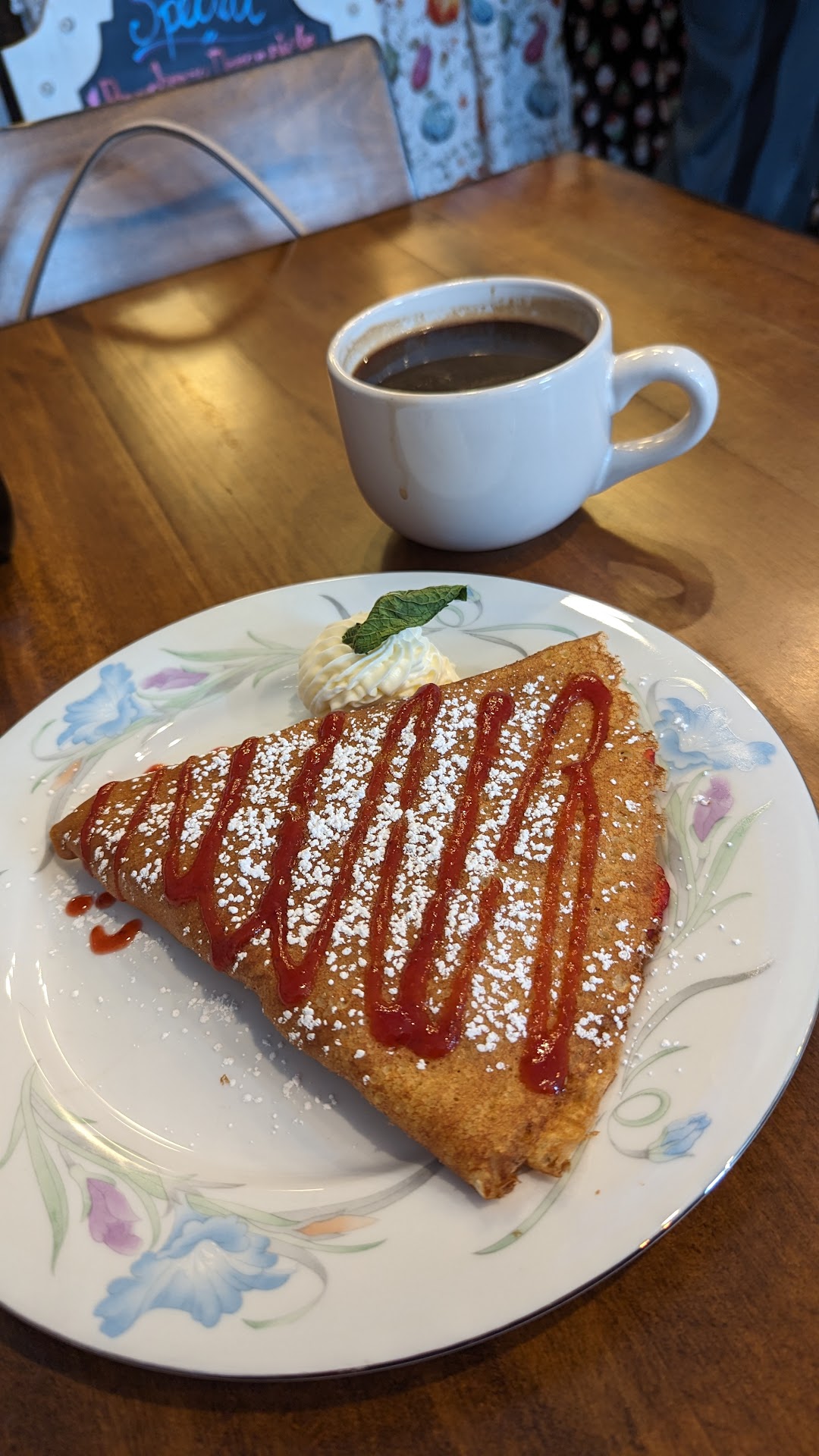 Read moreMixed review here. TLDR: food ok, not friendly, no coffee on weekdays) . First time at this restaurant. A few things from the initial order is that they only had crepes. You could not even order a side of bacon (even though you can add bacon to thee crepe). Additionally they do not make coffee on the week days (I guess only weekends?!). Americano it is. The big thing I noticed is the staff is just not friendly. Not necessarily rude but not welcoming and ignored questions. Side note you don’t have to be super happy just responsive and might be a good business strategy to make people feel welcome at the restaurant). The food was good. I did like the sweeter ones and the savory one was ok (maybe needed side of bacon). Overall for price I would say probably not be back but you should try if...