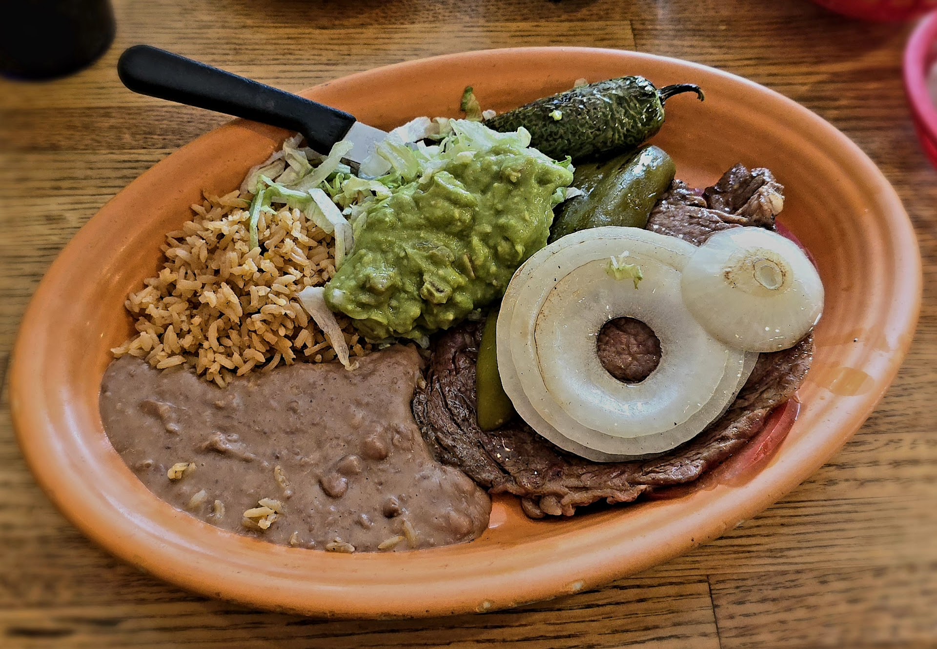 My friend ordered the beef enchilada deluxe plate and I ordered the plain beef enchilada plate. The waitress did try to clarify if I wanted the deluxe as well and I said, no, just the regular.
