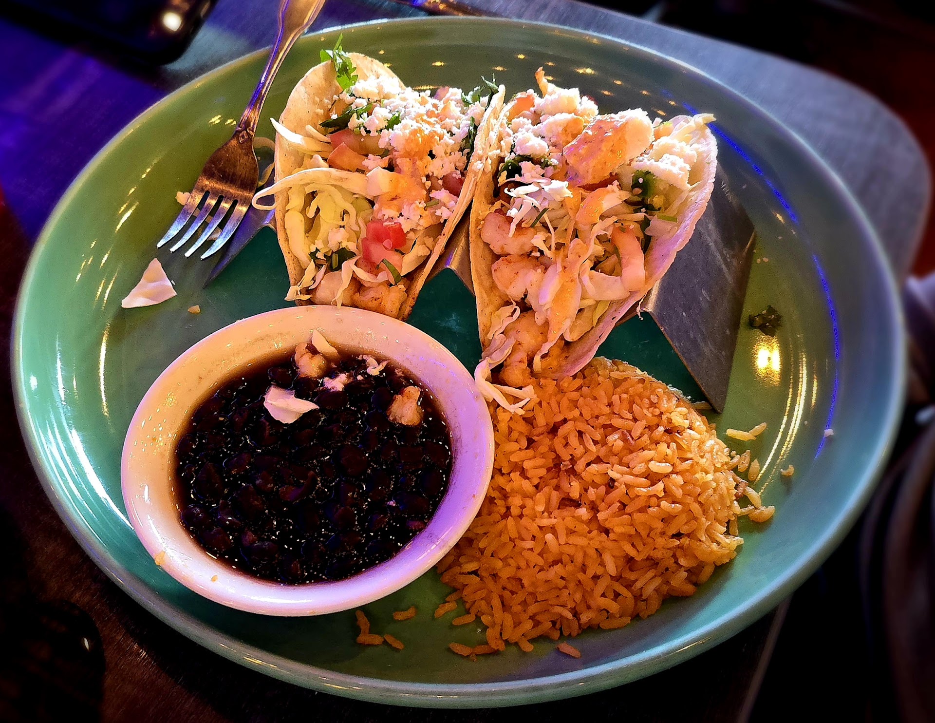 Entree: I ordered a cheese enchilada & tamale. It comes with rice & refried beans. The rice was rather bland which was a bit disappointing but the beans were solid. The tamale I think had pork in it but not sure and the menu doesn’t say what’s in it. It was solid though not dry had good flavor and the sauce on top added additional flavor. The same goes with the cheese enchilada. It was solid with good flavor and went well with the tamale.