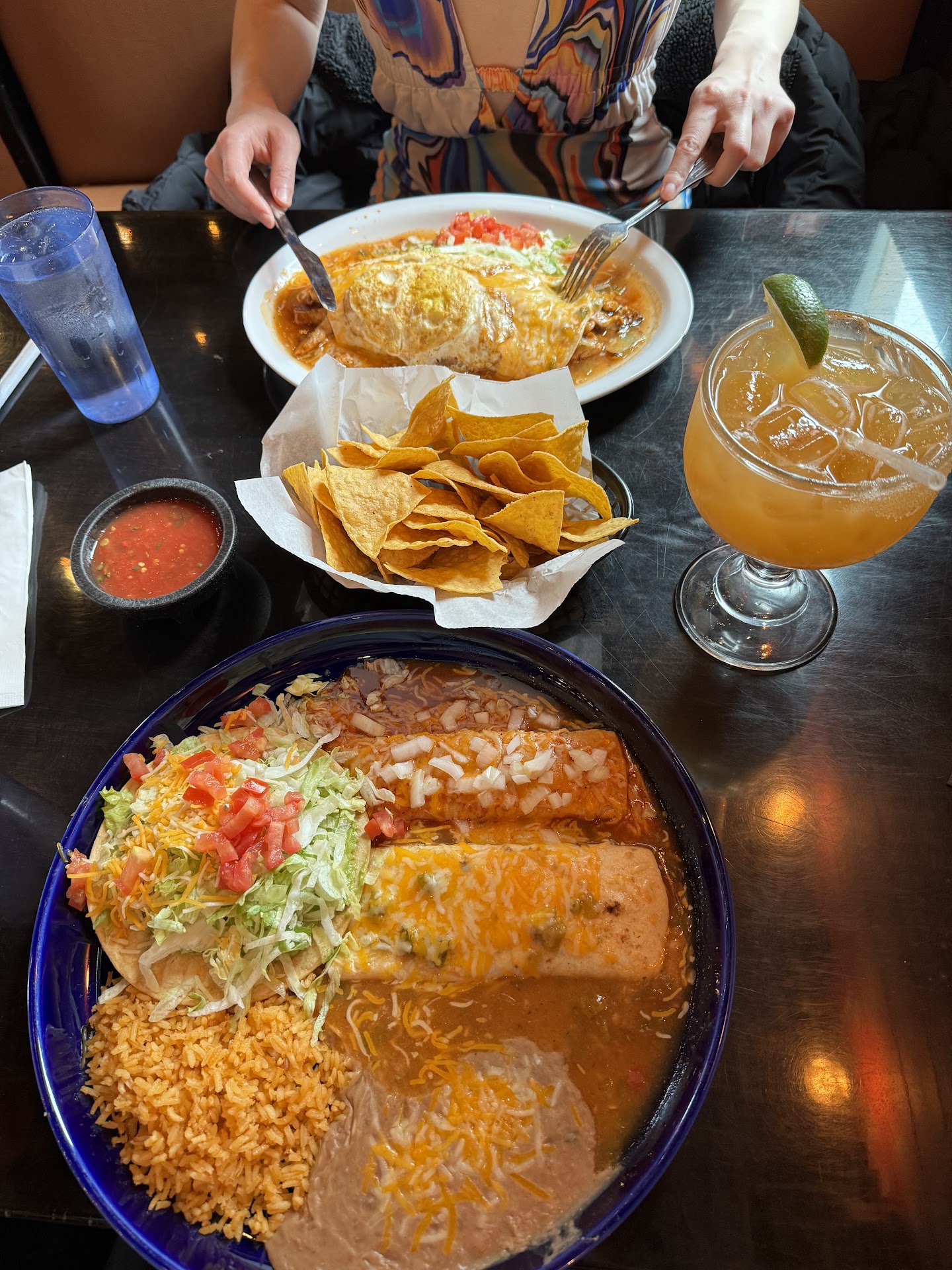 Entree: I ordered a cheese enchilada & tamale. It comes with rice & refried beans. The rice was rather bland which was a bit disappointing but the beans were solid. The tamale I think had pork in it but not sure and the menu doesnāt say whatās in it. It was solid though not dry had good flavor and the sauce on top added additional flavor. The same goes with the cheese enchilada. It was solid with good flavor and went well with the tamale.