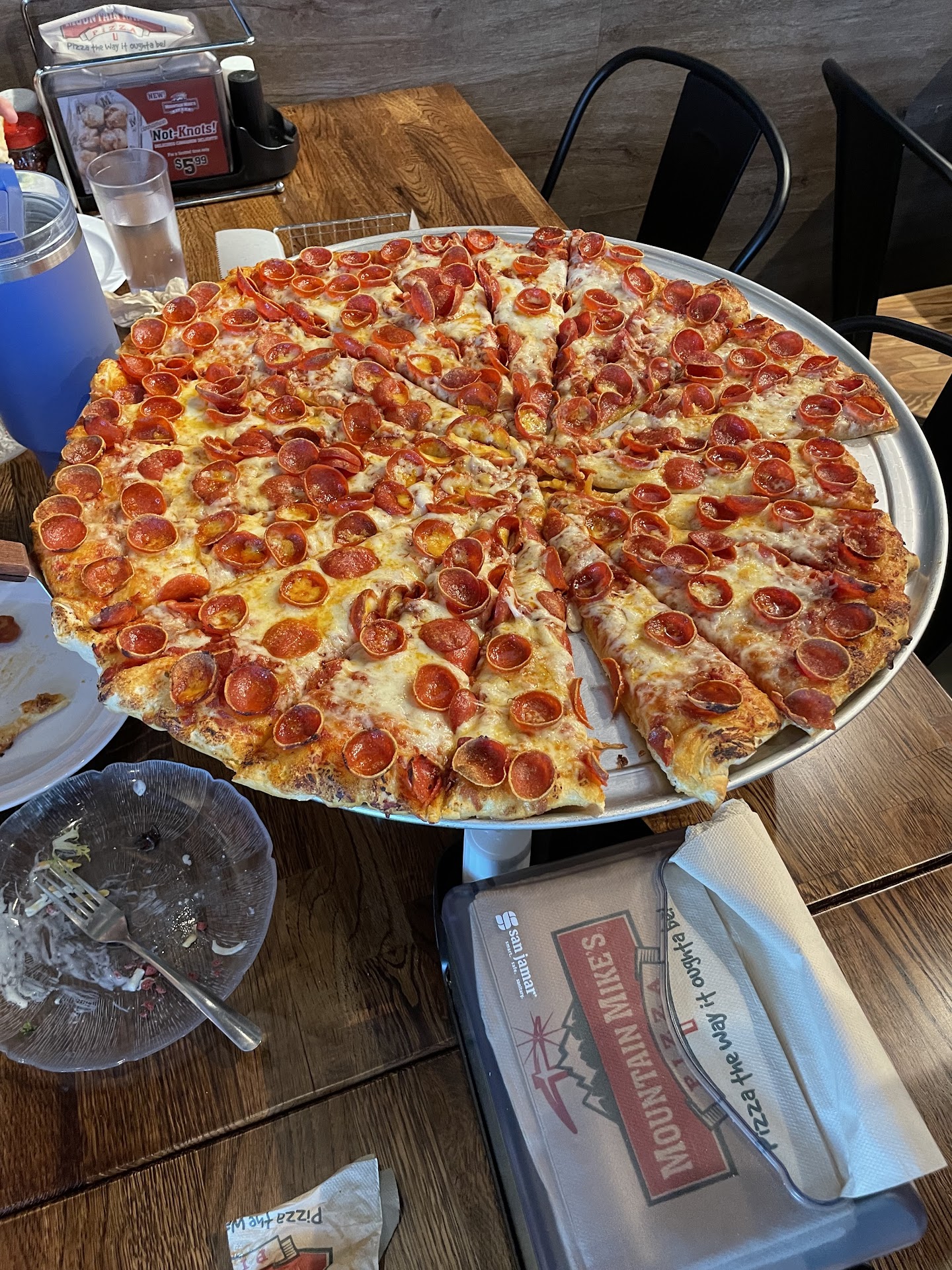 Now I love pizza of all kinds and rarely ever get pepperoni on it so that was good. But I never ever left once slice of pizza behind on the tray or not taken it home. Today I couldn’t eat my usual amount and threw half of it in the trash. “Pizza the way it ought to be!” Is the motto works for the pepperoni but the rest not so much.