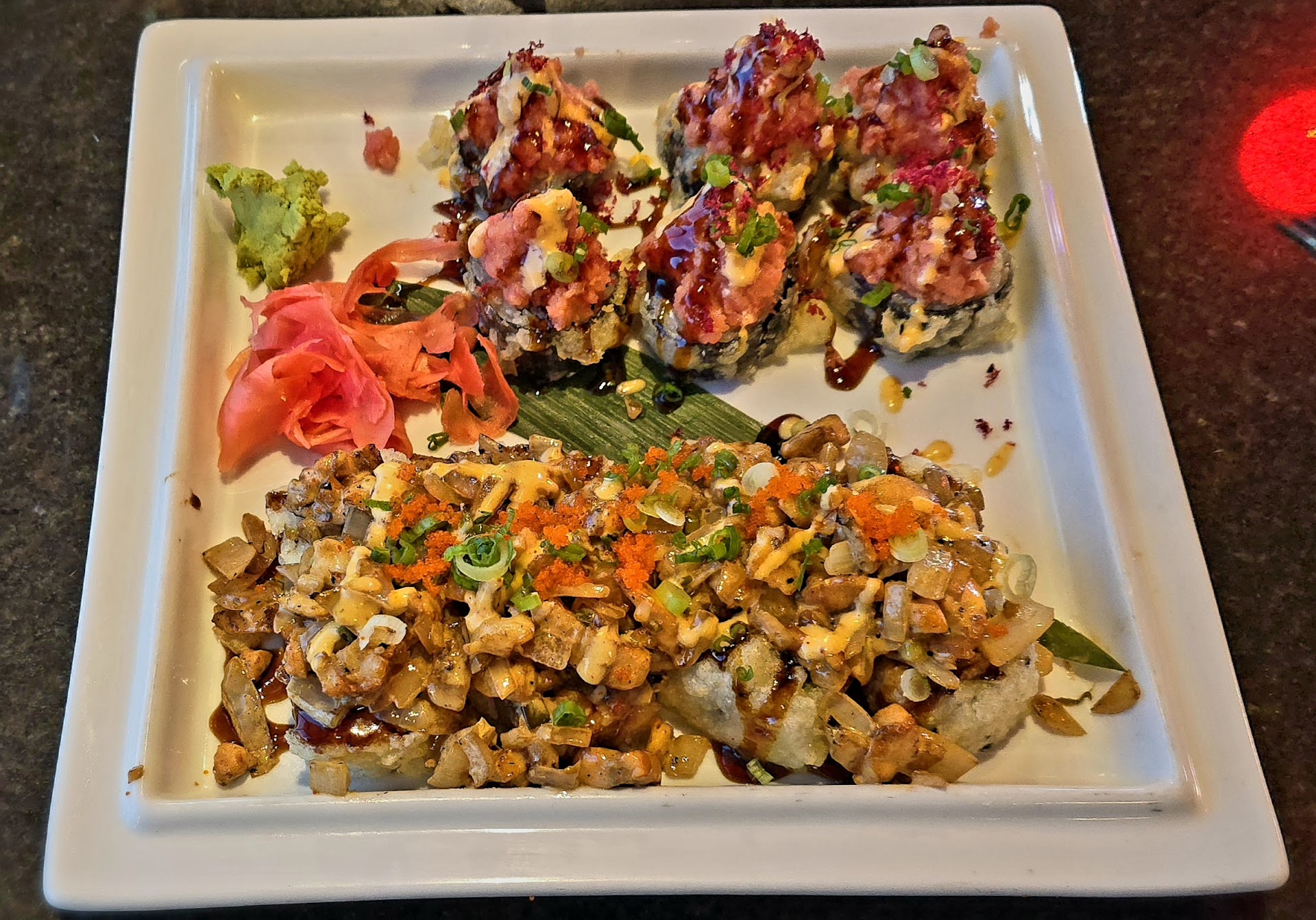 Read moreProps for being the only sushi restaurant open at 3:00 pm in Parker on a Thursday afternoon. Their prices are reasonable, and the service was solid. My wife ordered the L15. Sushi and Sashimi Combo Lunch Special and the chef went all out with his presentation. The miso soup and salad appetizers were unremarkable, but she loved the sashimi and left no bite behind on the main plate. I started with the shumai, which was mediocre, but the two baked rolls I chose almost made me forget about it. I picked their Volcano Roll which consists of Tuna, salmon, yellowtail with spicy mayo, eel sauce, scallion and fish eggs on top. First Volcano roll, i think I've ordered that actually looked like an actual volcano... also had just enough spice and great flavor. It was the best thing served during this late lunch. Next was the Mt.Fuji Special Roll (Baked & Deep Fried) loaded with crabmeat, avocado, cucumber, topped with baked fish, shrimp, onion, scallion, and carrot, which was pretty damn good, all around, in it's own right. I recommend dodging the appetizer menu and sticking to their specialties. The damage from the bill was light, and we...
