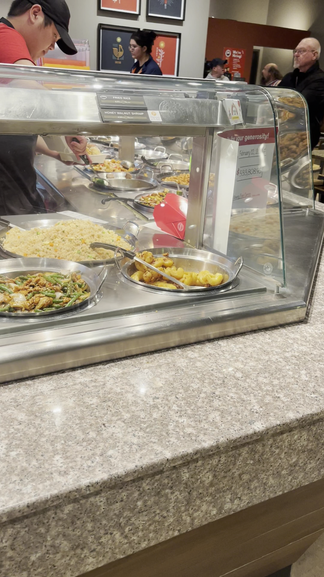 I recently had an unsatisfactory experience at Panda Express that I feel needs to be addressed. While we were waiting for our food, I noticed that the person handling the cash was not wearing gloves, which raised immediate concerns about hygiene. Additionally, our meal sat in a cold area for an extended period while we waited.