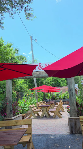 The outdoor seating is stunning - lush greenery, tropical plants, and beautiful hand-built wooden tables and benches. You can tell they were made with care, and it adds to the thoughtful, welcoming atmosphere that makes this place feel so special.