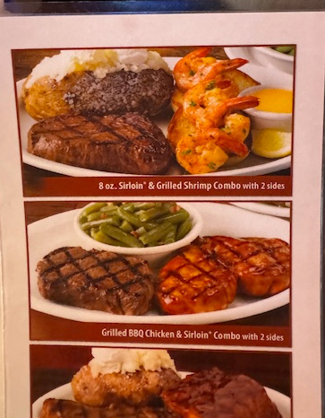 I ordered the "8 ox. Sirloin & Grilled Shrimp Combo" and I added a sidekick for my meal, that was the "Shrimp - 360 cal for $7.98"