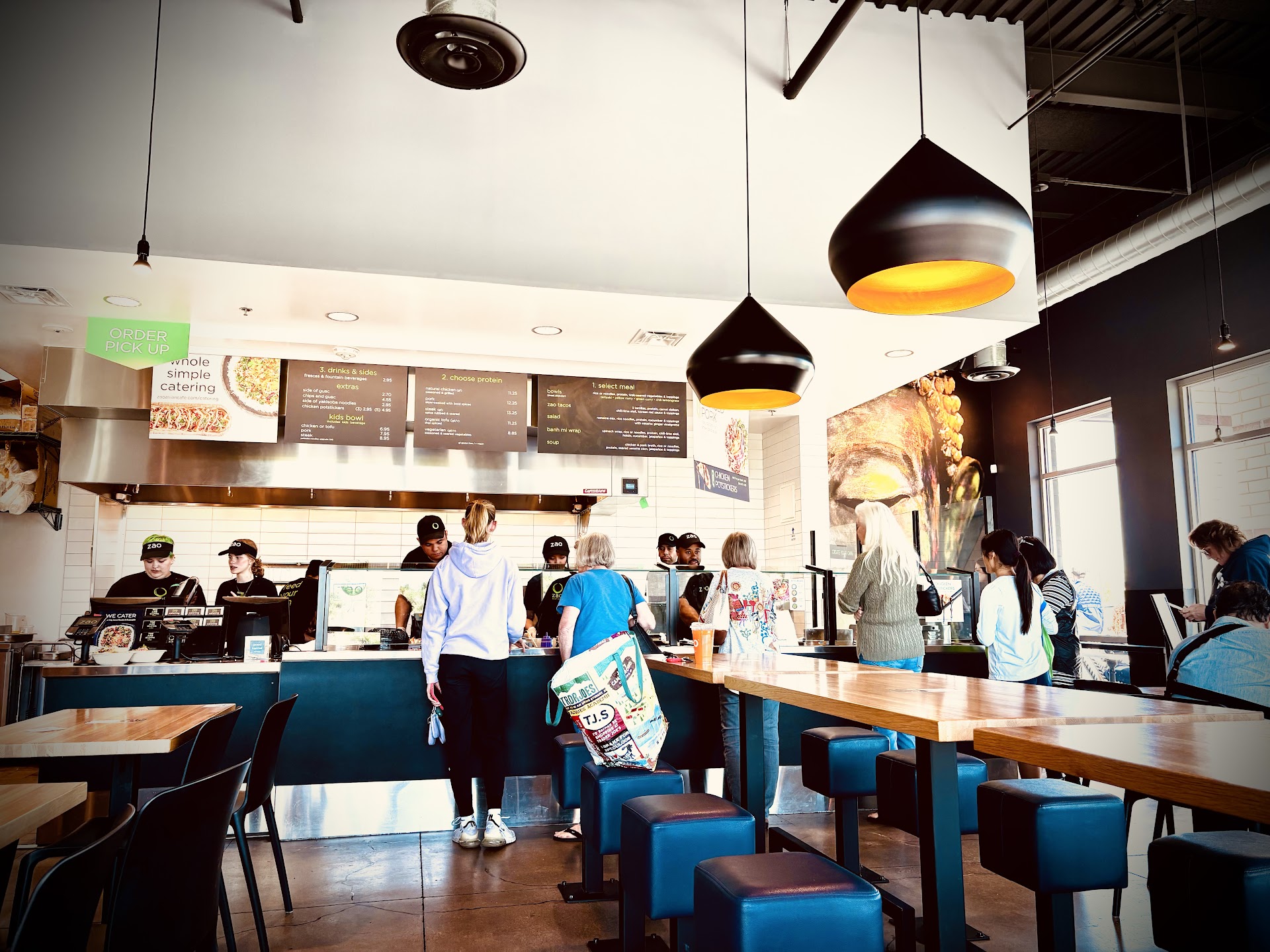 The open-concept kitchen allows diners to witness the assembly of their dishes in real time. Zao’s well-balanced menu is a masterclass in customizable Asian fusion. Guests can choose from a vibrant array of vegetables, proteins ranging from tofu to grilled steak, and a thoughtful selection of sauces and carbs to round out each bowl or plate. The result is a meal that feels fresh, nourishing, and perfectly tailored to the guest’s palate.