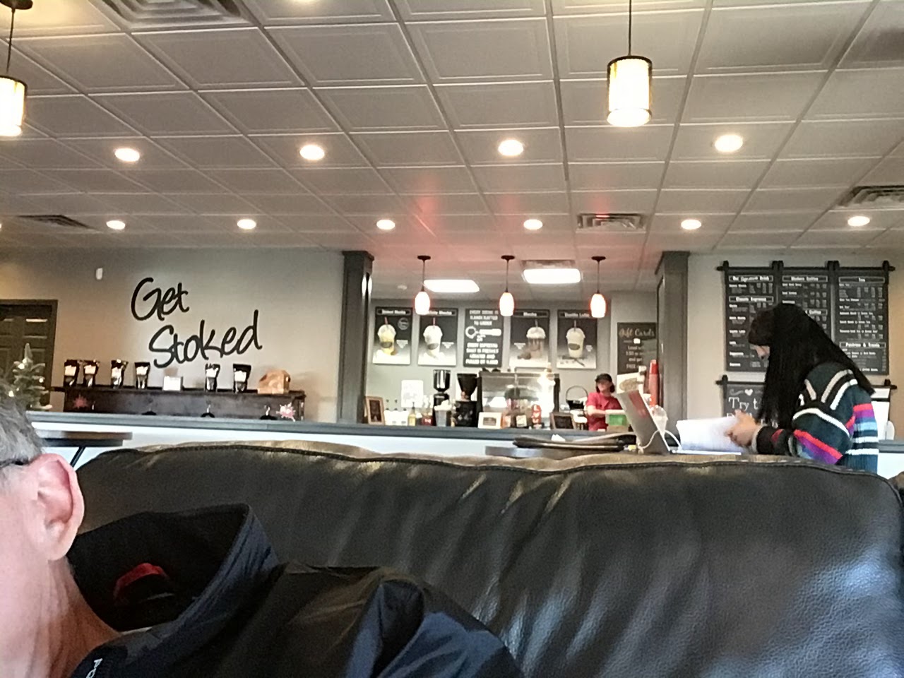 Read moreThis is a very large floor plan so I have no idea how the word “cozy” made it into the description that popped up. It was very clean but pretty empty at 3 on a Saturday afternoon. There was Christian music playing over the PA which wasn’t objectionable to me personally, but pretty bland and uninspired. I got the impression the place makes more of its sales through the drive through than in-house seating, but this was my first and only visit so that might be wrong. It seems relevant because there were about 5 employees behind the counter and all I ordered was a dark roast regular coffee and it took about 2 minutes to get it. No, that’s not a long time but how long does it take to grab a cup, fill it with coffee, and hand it over? Staff seemed cheery but...
