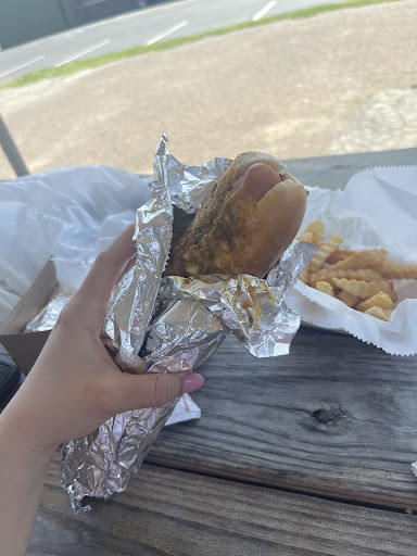 Read moreDrive by and stop whenever I get a chance! Great footlongs with sauce, slaw, onions, and shredded cheese for $4???? Come On Now !!!! Yes Please! Not water dogs.... GRILLED DOGS! Seasoned crispy fries 🍟 for $2... No Brainer! Where can you get food so hot to actually have to wait a minute to eat??? Prices are low, food is great ! Always a great place to stop! Ohhh AND... They come to your car and take your order!!! Can you say old...