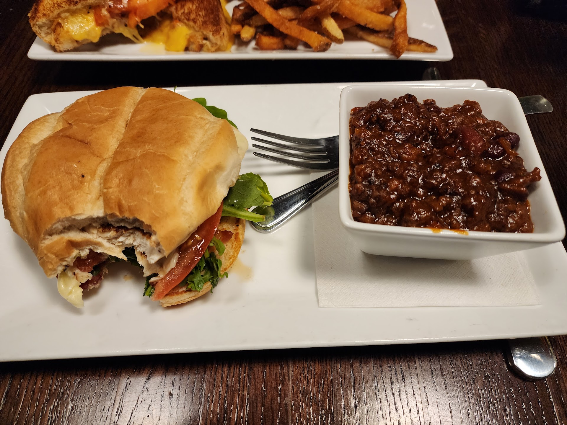 They take a couple of slices of marble Rye, toast them, put a little 1000 island dressing on it, add some house made sauerkraut along with some house made 1000 island lay down some Swiss cheese and top it with wagyu corned beef! This sandwich had all the flavors and the textures that typical Reuben would have. You bite into it you get the crispiness of the toasted bread and then a little bit of the creaminess of the cheese followed by the sweetness of the 1000 island the bite of the sauerkraut, and then the savory deviousness of very tender corned beef. This sandwich is served with a mountain of Craic house cut French fries!