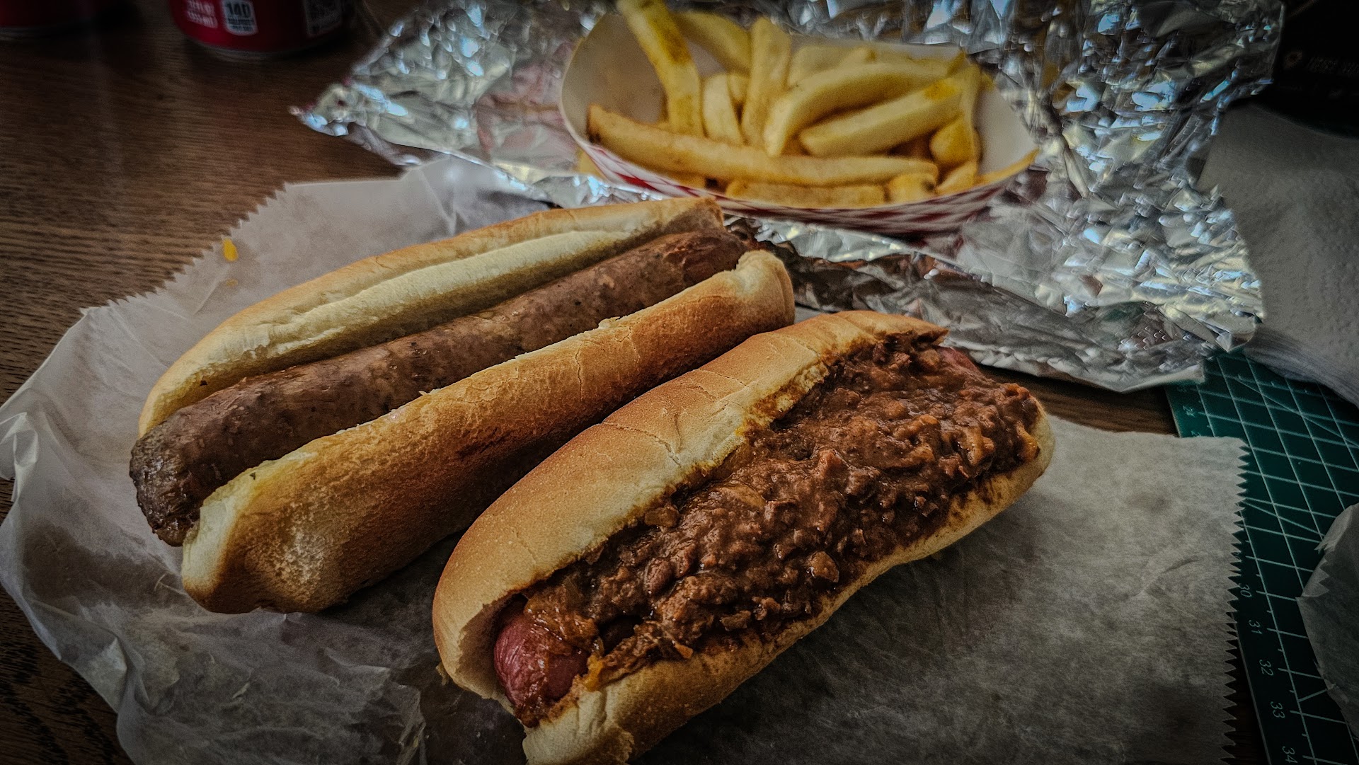The onions were chopped perfectly, and the chili was flavorful. I had him put cheese and a strip of stadium mustard on it, but the chili/ onion, mix overpowered their flavors.
