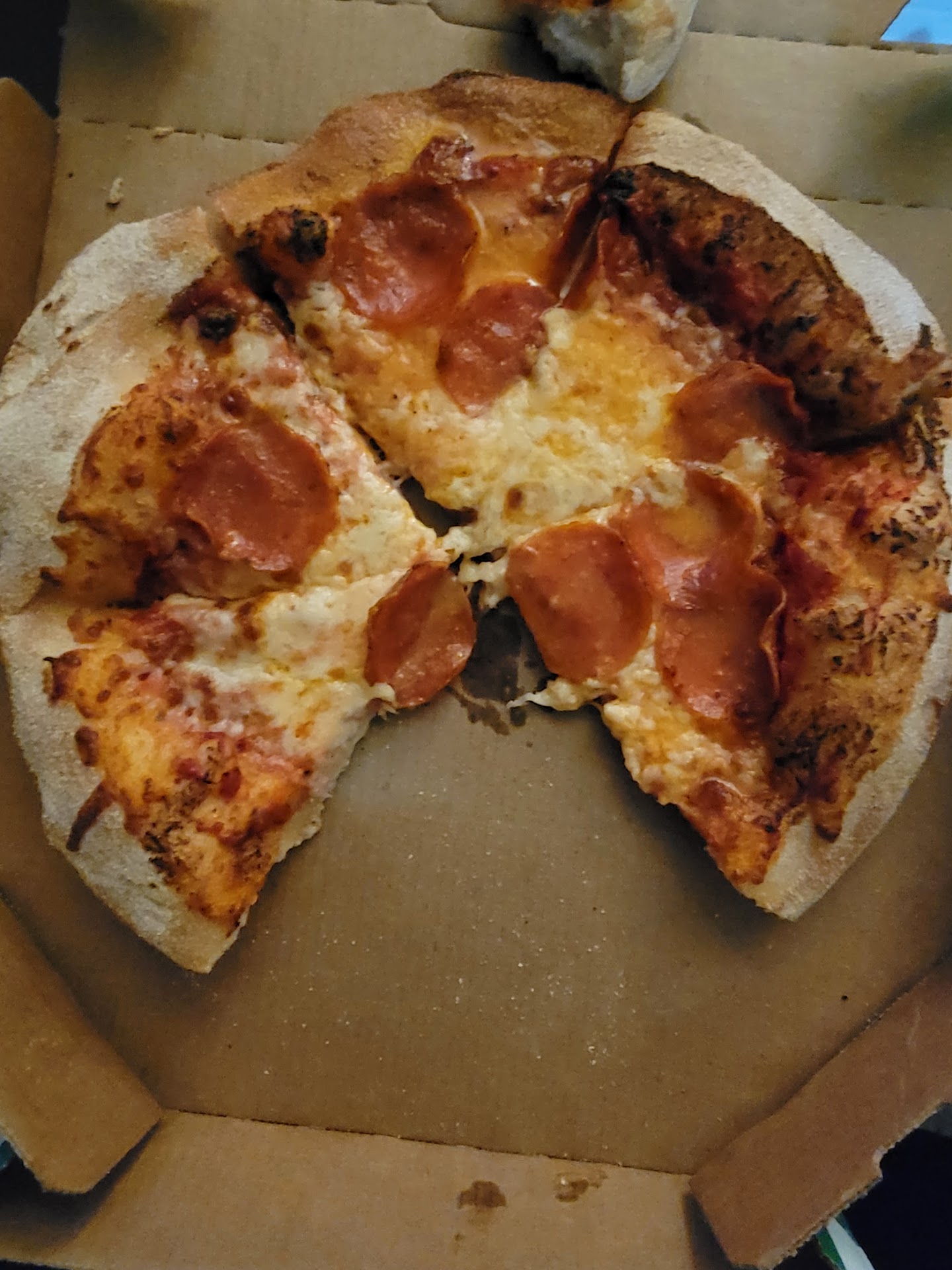 Read moreOrdered a pizza to be delivered at 5:15 PM. Recieve a phone call at 4:45 that the delivery driver is at my apartment. I let him know what's going on and tell him to just leave I won't be there for a half hour. Call the store and tell them what happened. I was right down the street from the store so I said I can come and just pick up a new pizza. She apologized and said she's putting a new pizza in the oven now. I get up there, go inside and wait around 10 minutes with my kid. Let the girl know to still make sure the driver gets the tip because he didn't do anything wrong and deserves it. They never made me a new pizza, they gave me the old one that was driven all over, and made a half hour prior. The delivery receipt was ripped off the top of the box, and it appeared that the pizza had a rough trip because it was all smooshed inside. I've ordered weekly from this place for about two years, now I'm going to find a new place. Maybe next time you make a mistake, you should take some sort of initiative to make it right and surely don't lie to the customer because you are too lazy to throw a new pizza in the oven, and too dumb...