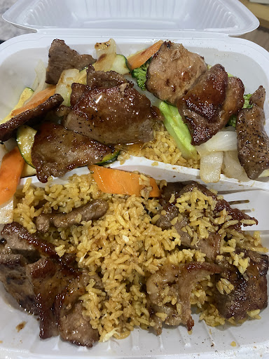 I ordered the steak hibachi at 6:30pm. I was hoping for filet or a similar tender cut of steak but I think it's skirt steak. A bit too fatty for me personally but it wasn't tough & there's a lot of it. The rice was a bit dry (I thought they forgot my rice but its under the steak). The yum yum sauce didn't taste like any other I have tried, had a strange flavor to it so I ended up making my own once I got home. The overall amount of food you get for $12 is good - enough for 3 meals for me. If yum yum sauce is the reason you get hibachi (like me), I'd pass on this place or use your own. Next time, I'll come for the lunch special, instead. You can eat your takeout there, they have 2 small tables with 4 chairs at each. It doesn't look like they serve you here. Easy parking right in front. When you order online, you pay at...