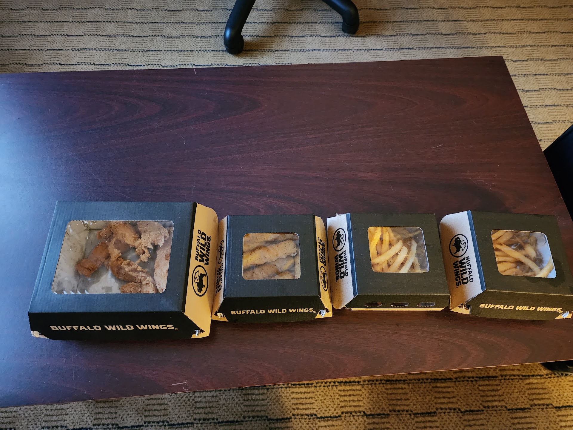 Ā Ā Ā Read moreThey handed my pick up order out to the wrong person⦠not a huge deal. They took about 25 min to remake it. Again, whatever. But then the garlic parm chicken barely had any sauce on it, the lemon pepper chicken was completely dry it had just a little bit of the dry seasoning at the bottom of the container, and the fried pickles seemed to not have went in the fryer long enough. I didnāt get the sauce with those either. Like I donāt care that much if you hand my order out and had to remake it, I would have only took off 1 star for that. Things happen. But remake it right. Thatās just too many mistakes in a row for me, the staff is just being careless. The atmosphere was so different than the other Buffalo Wild Wings too. Thereās no bar so itās pretty much just a take out restaurant. Very sad looking on the inside compared...