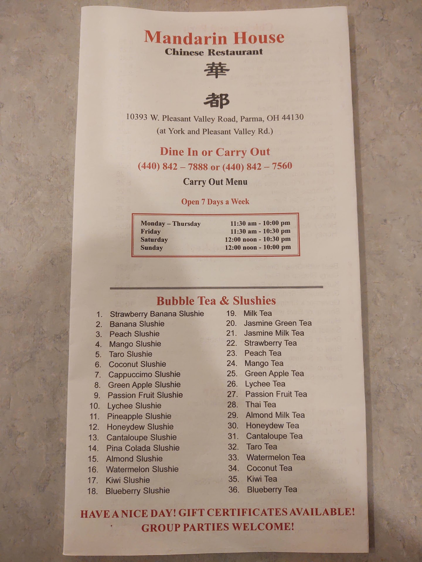 Price - Surprisingly not bad. They also have lunch specials that run pretty cheap. You are sure to find something that will fit the bill just fine.