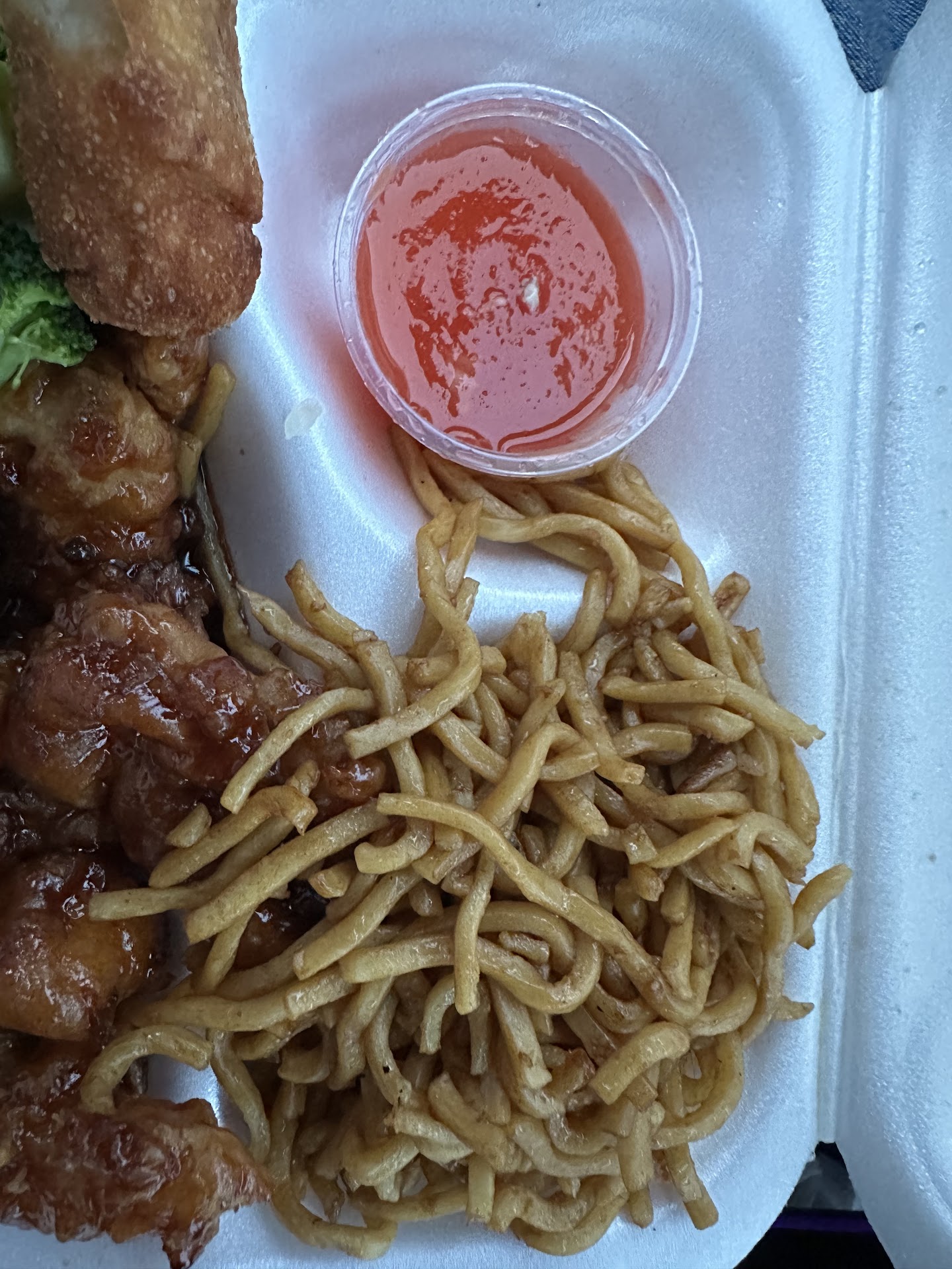 Read moreI ordered chicken and broccoli, but there was barely any chicken. What little there was was white and cooked in some kind of broth, with a ton of broccoli. It would have been great if I were vegetarian. To top it all off, the plastic utensils were standing upright in a cup with no covering. She grabbed them with her bare, nasty hand and expected us to eat with them. She also didn’t give us any napkins, and when we went back in to ask, she only gave us two—just one for each of us.