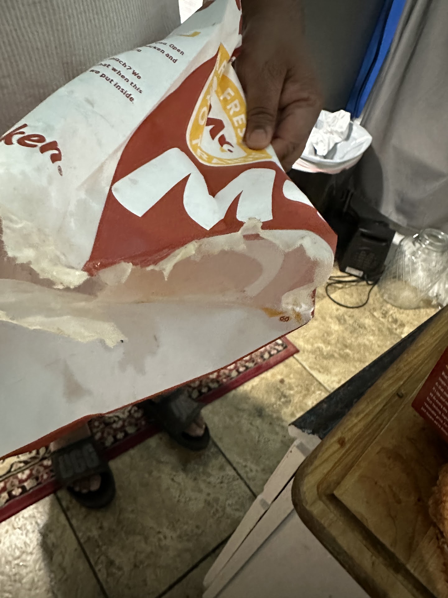 I pull up to this Mr Chicken, and it's packed. Kindof annoying until I notice how fast the line is moving, I can tell people are working hard, getting the job done.