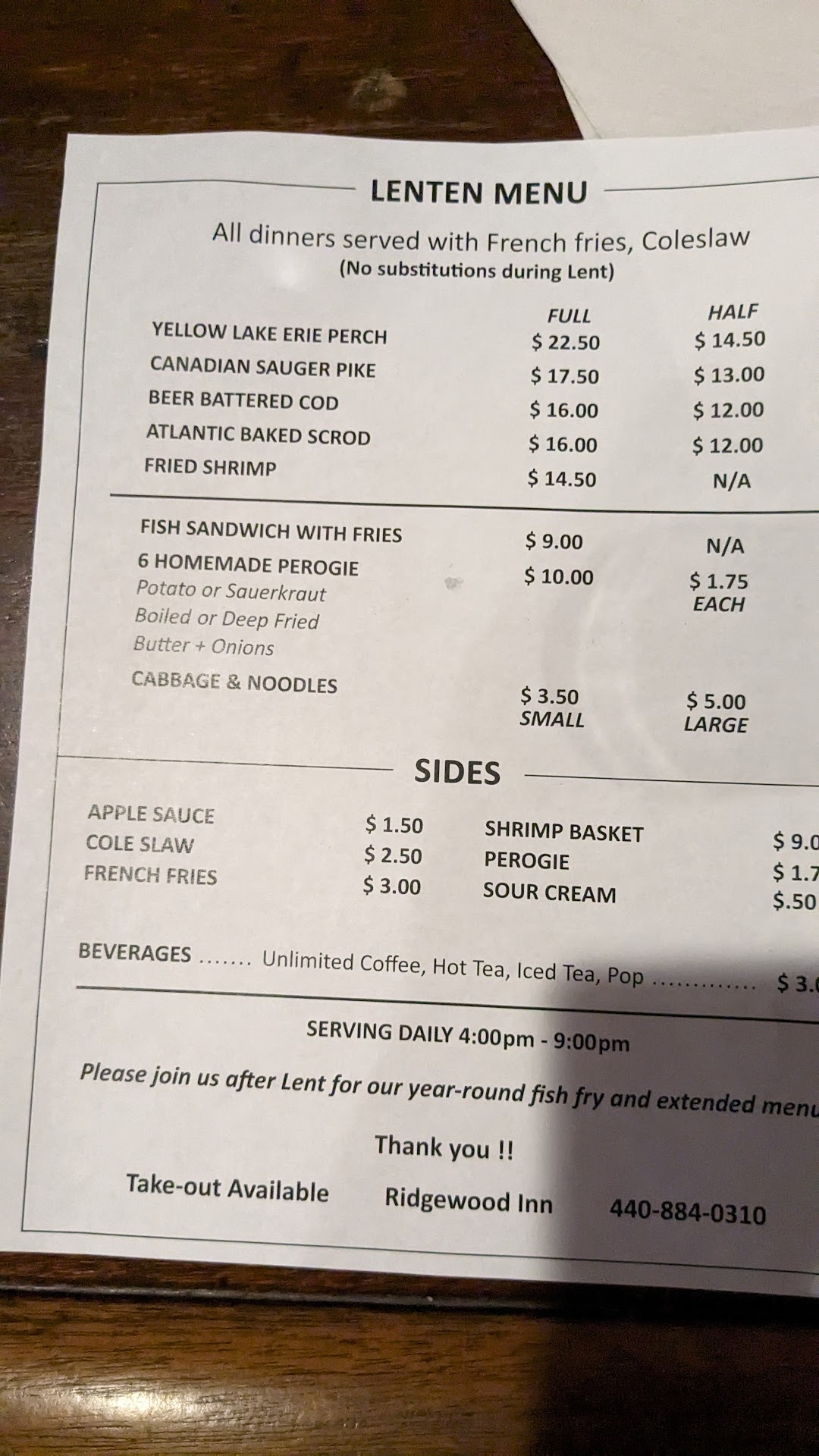 Read moreGo early! I understand it's lent season, but we arrived early because we anticipated a wait. Got there around 4:30, ordered immediately. Didn't receive our food for over an hour. We were all getting pretty hungry, the food was good when we got it, perogis are always good. The good food didn't make up for the wait, our server pretty much forgot about us in that entire hour of waiting, not bringing us drink refills or more bread. I wasn't happy with my experience and then the icing on the cake was the fact that this place doesn't take credit cards...only cash. It's 2019 and this place is going backwards. Used to be such a great place to go growing up, I probably...