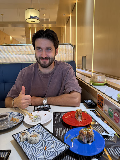 One thing we didn’t love was the booth layout—specifically, one section where there was no divider between booths. It felt a bit awkward being so close to another party with no separation. As we waited for the sushi to come around on the conveyor belt, we noticed it was mostly filled with signs instead of actual plates of sushi. We assumed more would arrive soon since the restaurant was starting to get busy. While we understand not fully stocking the belt when it's slow (to avoid waste), it was disappointing that the selection remained sparse the entire time we were there.