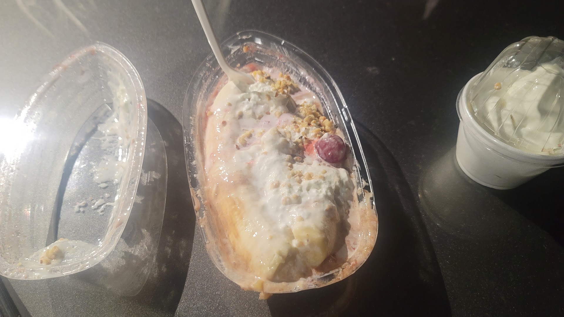 Read moreI usually go to honey nut for my banana split but they close an hr earlier then this place. I ordered same thing but nothing compared to other places. 50 degrees out and ice cream was already liquid in 5min. I see why they don't like to give you lids because they don't stay on and leak all over the place. I asked for little pup cup for the my 5lb yorkie and they charge you as much for spoon full of ice cream then they do for entire quart at the store. Ice cream sucks here to and they're cheesy with the amount. Service was poor too. At first they didn't give me pup cup I had paid for and I had to tell them I had...