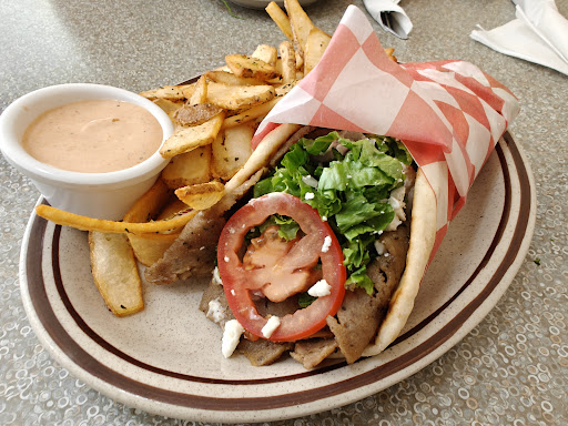 I got the Gyro and was happy to find the cold ingredients were cold, the meat was hot and the pita was warm. The fries are flat, almost like a thin battonet cut and were cooked properly and seasoned well.