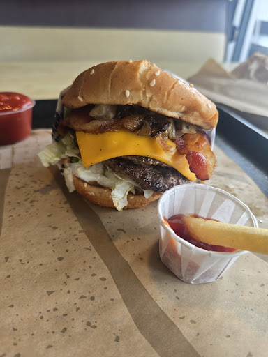 Listen, the food tastes just fine; however, my issue is the price for what I got. Nothing to rave about the food tastes like burgers and fries nothing special. I could barely find my burger under all the other stuff (lettuce, sauce, tomato). If I had known I would have ordered two patties but this was my first visit. The fries were hot and fresh and the drinks from the soda machine were watery. The juices must have been the optimal choice because everyone kept refilling at those dispensers. It was fairly clean but I had to wipe our table down before we sat down to eat. I just don’t think the prices match the food. I immediately wished I had gone to Five Guys or Smashburger. Some of you won’t mind but if you are like me and you love a nice juicy burger 🍔 to fill you up this may not cut it. You will get full off the lettuce and tomato filled buns. I can’t claim it’s a healthy option because the bags were extremely greasy. I don’t know if this is the norm for this place or what but this was my first time and I...