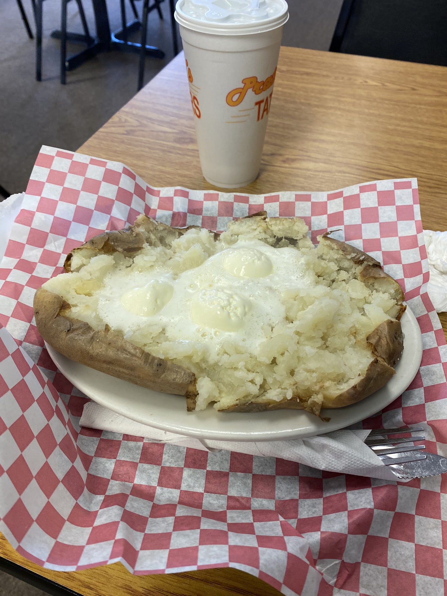 Ā Ā Ā Read moreI travel through here quite often on my way to Nashville and I saw the name of this place and I had to try it out. It's a nice little country Restaurant. It's the only place in the area I know that has several different choices of baked potatoes. I tried the loaded barbecue potato the girlfriend tried the chicken bacon ranch potato and we were both very happy with them. They were very good. The people were very friendly and there's a cool mural on the wall. There was also quite a few Mr Potato heads on the wall. I like the decorations it was a very cool place to visit I enjoyed my meal and I am looking forward to going back again. I can't wait to try different potatoes next time. I would definitely...