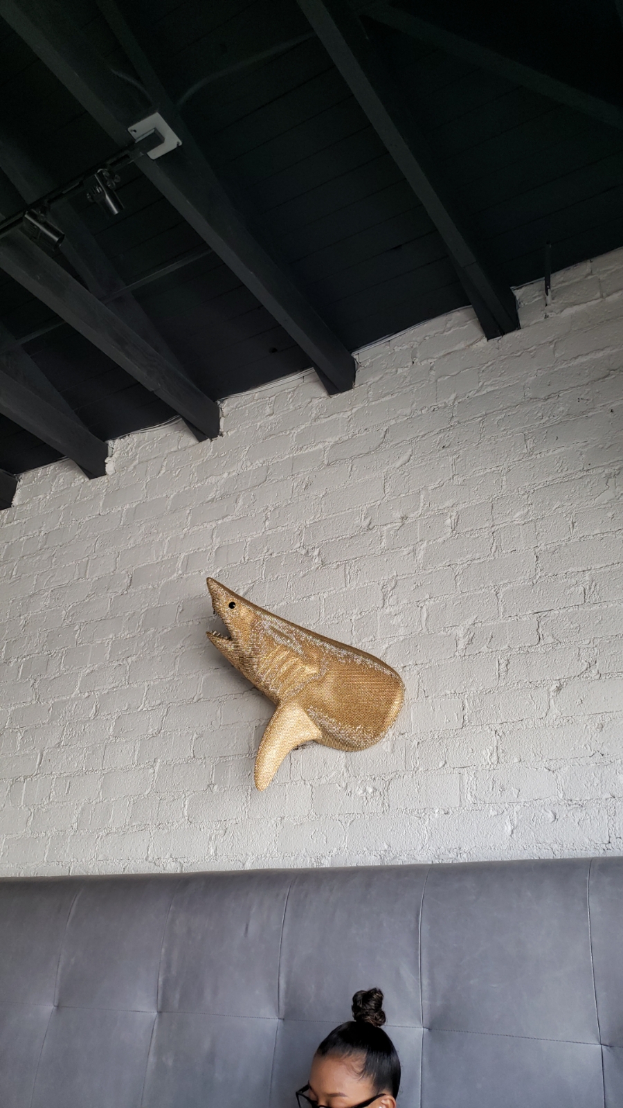Now, moving on to the atmosphere of Art + Science. To me, I think they really nailed their aesthetic with their modern grayscale-esque color scheme implemented into the furniture and design choices. However, it’s their hint of fun quirkiness showcased in little baubles tucked away in various parts of the shop along with golden eye-catching shark and t-rex heads mounted to the walls for all who walk in to see. A soundtrack consisting of light-hearted indie rock music and slower paced pop music sets the mood for intimate conversations without being too exuberant to disturb the busy bees stopping in to get some work done, overall giving the shop a calm yet enjoyable ambiance. Plan accordingly, because with limited seating for groups larger than two inside along with growing popularity, you could just be fighting tooth and nail...
