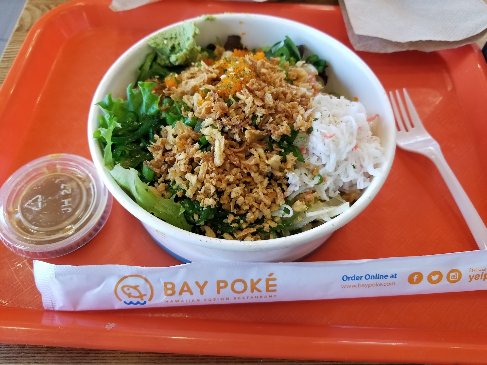 So what makes Bay Poke stand out among other poke places is their variety of toppings and the fact that they offer pineapple dole whip as a dessert.