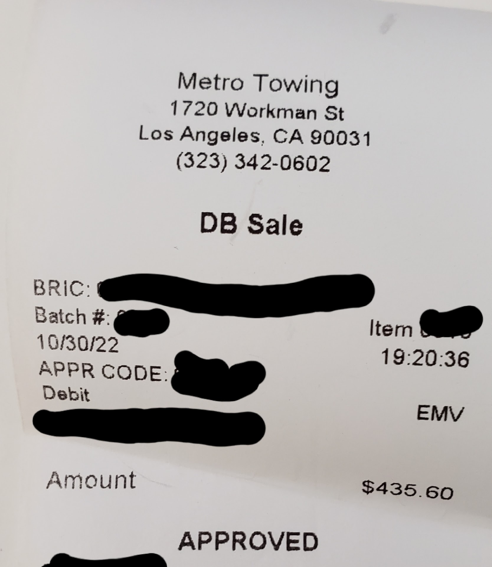 The tow company was around 25 mins. apart. That means our car was possibly being towed within half an hour after being parked.