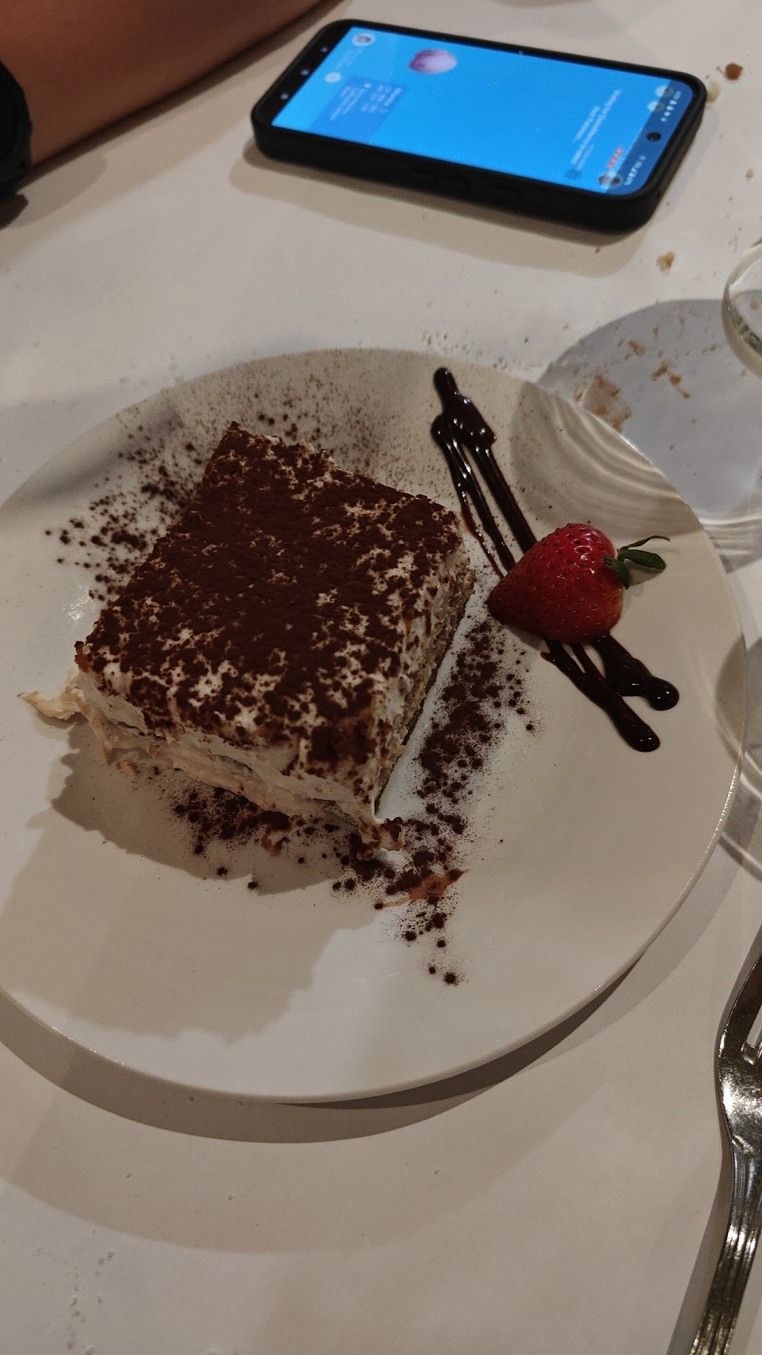 Food: overall, it's alright. It'll hit the spot of 'I'm craving Italian', but you won't leave feeling like you just had a traditional true Italian meal. I got the special of a swordfish steak, and added in a dish of penne, extra. The steak was great but the meal lacked a proper amount of vegetables and carbs. In fact there was no carb (why I had to order penne). I was expecting a meal, not just a single meal item. we got asked if we wanted bread and butter, something every single restaurant offers and provides for free (at least every single one I've been to, up until now), we said yes and and up getting charged!! What?!? the penne was mediocre, literally something you can throw together yourself in 15 minutes at home. Nothing special here. the imported Italian beer they have is surprisingly good, the blond is better than the red! tiramisu was above average, if I'm being honest I can barely remember it .