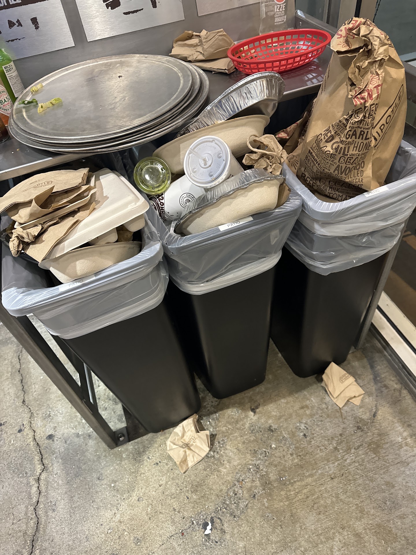 The food was alright, too much rice not enough sofritos. The 3 girls behind the counter had the personality and vocal out put of a brick. You couldn't hear them and they weren't listening. I had to interpret to an older lady behind me and tell them what she was saying and her what they were saying(I used to be a server/ trainer in some good restaurants and know when a customer is having difficulties, too bad they didn't). They were exceptionally lame and I would say they need retraining but these type of workers are the norm nowadays, hired by types that love those dim witted, bad customer service food regurgitating types . They Don't care about good food or good service, just pump it out as meaningless as possible. I mean, the lady behind me asked the girl to put some of the juice from the beans on her bowl and the girl put a tiny tiny bit in and the lady asked for some more and the girl behind the counter got gruff. Then I thought the genius who packed my bag was putting the Sauces safely down the side of the bag and as shown from the pictures, you see she was only smart enough to put it in sideways, it obviously opened and spilled, ripped the bag and got on my car seats, in a car that, even my 4yr old hasn't spilled in. To add to that, the grilled fajita veggies tray was empty and the 2 guys behind the cook area was just standing there talking, looking out the window and everywhere except getting the fajita veggies cooked and back in service.. I hate this store, this is like the 5th time I've been here and always the same, very underwhelming and never again will I eat here. It might as well be a McDonald's in a 3rd...