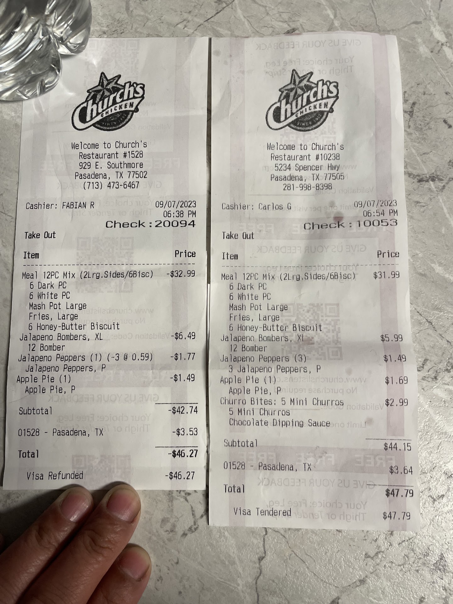 Ā Ā Ā Read moreIām giving this restaurant two stars because one the chicken was overcooked second of all the biscuits were old. You could tell by the taste. Thirdly, the okra was old. You can tell I have been sitting out for a long time.Last but definitely Not least, because I ordered an eight piece jalapeƱo bomber, and it was not given to me, even though I paid for it, and when I tried to call the store to tell The manager about it, it went straight to voicemail. Which means customers cannot get in touch with the store. All in all, it was very unprofessional and unsatisfactory. I used to work for churches chicken in Deer Park so I know how the food is supposed to taste and this was not it Iām not sure if I even want to go back to the...