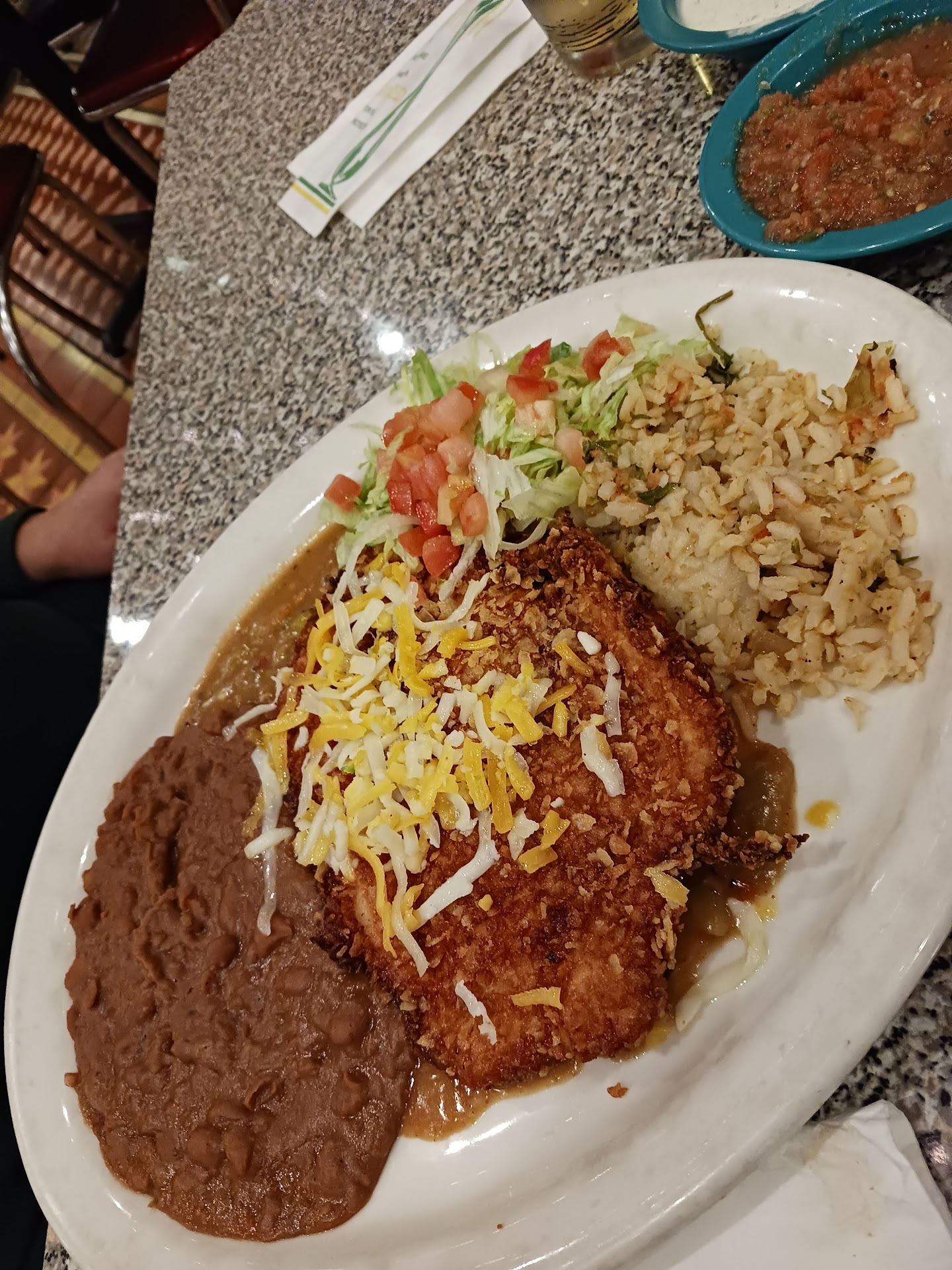 Read moreI haven't been to Chuy's in at least 4-5 yrs. I used to go often to the College Station, Tx location when I lived there. My significant other of almost 4 yrs told me she didnt like the enchiladas she got at Chuy's several years ago and hasnt been back since. I asked her which enchilada sauce she got because there are several good and distinct flavors to choose from. I missed going to Chuy's and we agreed to be open minded and give it another try on her part. Well we were both impressed with our meal and we willl return soon. It was as unique & tasty as I remember with their take on Tex-Mex flare. My significant other was all smiles and asked that we put Chuy's on our regular restaurant list; I agreed. The green chile rice was different but pleasant & delicious. The refried beans were different (red chili powder, bouillon..?) but full bodied & yummy. My Fire Steak Fajita Enchiladas were different but simply amazing. My significant other's Elvis themed Chicken Fried Chicken on a bed of (hatch) green chil sauce was different but delightful. The prices are very affordable. The menu is unique. Not the type of traditional tex mex or mex food we are used to in this area particularly, and they dont claim or try to be, but it does very good with its diverse comingling of spices, chiles & flavors. Enjoy; see...