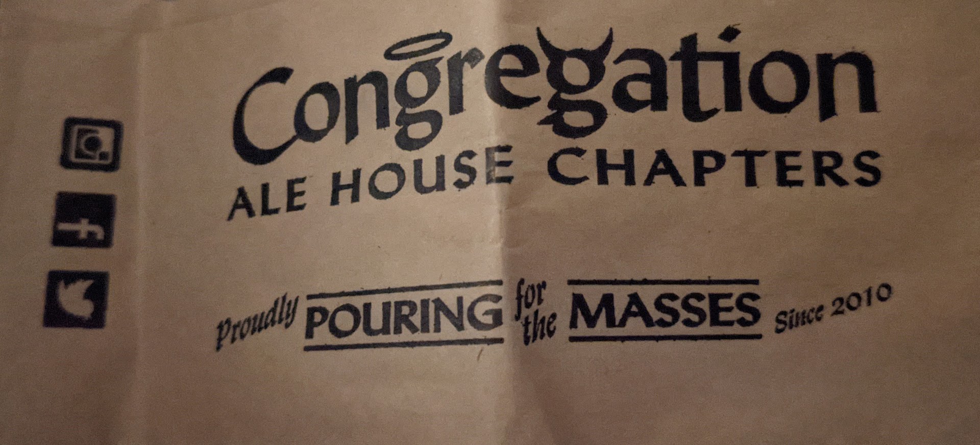 Congregation has a decent menu and I would not mind coming back to try some of their other food items. A couple at our table got one of their pizzas and it looked pretty good. My disappointment in the garlic fries does give me pause, however, and this venue is not a great place for conversation since it is so loud inside. It is a nice place however to just chill and drink (responsibly) with friends in the area. 3.5 stars...