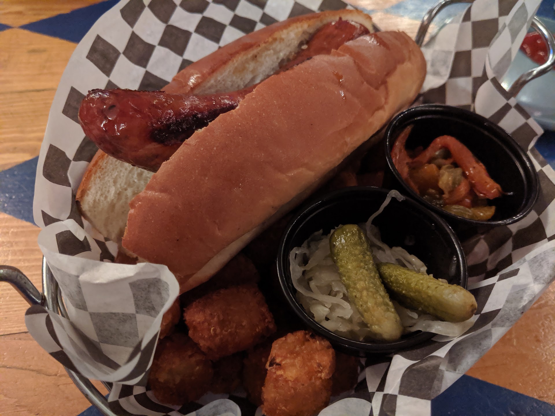 Read moreLet me start by saying I love German restaurants. I consider myself a connoseur, even though that's French. We came here all the way from West LA to try something other than Wirtshaus, Rasselbock, and Silverlake's Red Lion Tavern. After a $30 Lyft, we arrived and found out it was Friends trivia day. Normally I love trivia, but this was just weird. Very quiet and like... professional? I want a casual experience when I go to a German place. Anyway, we sat at the bar, which is the only place you can order here. The service was extremely friendly and helpful, but bless their heart if they knew how to provide prompt service. We waited about 15m for a pretzel. Then we ordered a sausage plate appetizer. That took about 30m, and was fairly cold when we got it. We were two of about 20 people in the restaurant at this time. Not great. We gave them one last chance to redeem themselves with a beer battered brat, and I must say, it came out a lot quicker than the other food , but it tasted like pan-fried kielbasa. The tots were great, but honestly it was not worth the trek from West LA. Sort of a blessing in disguise because we checked this off of our German list without any desire to come back. TL;DR if you're looking for a legit German spot, come to West...
