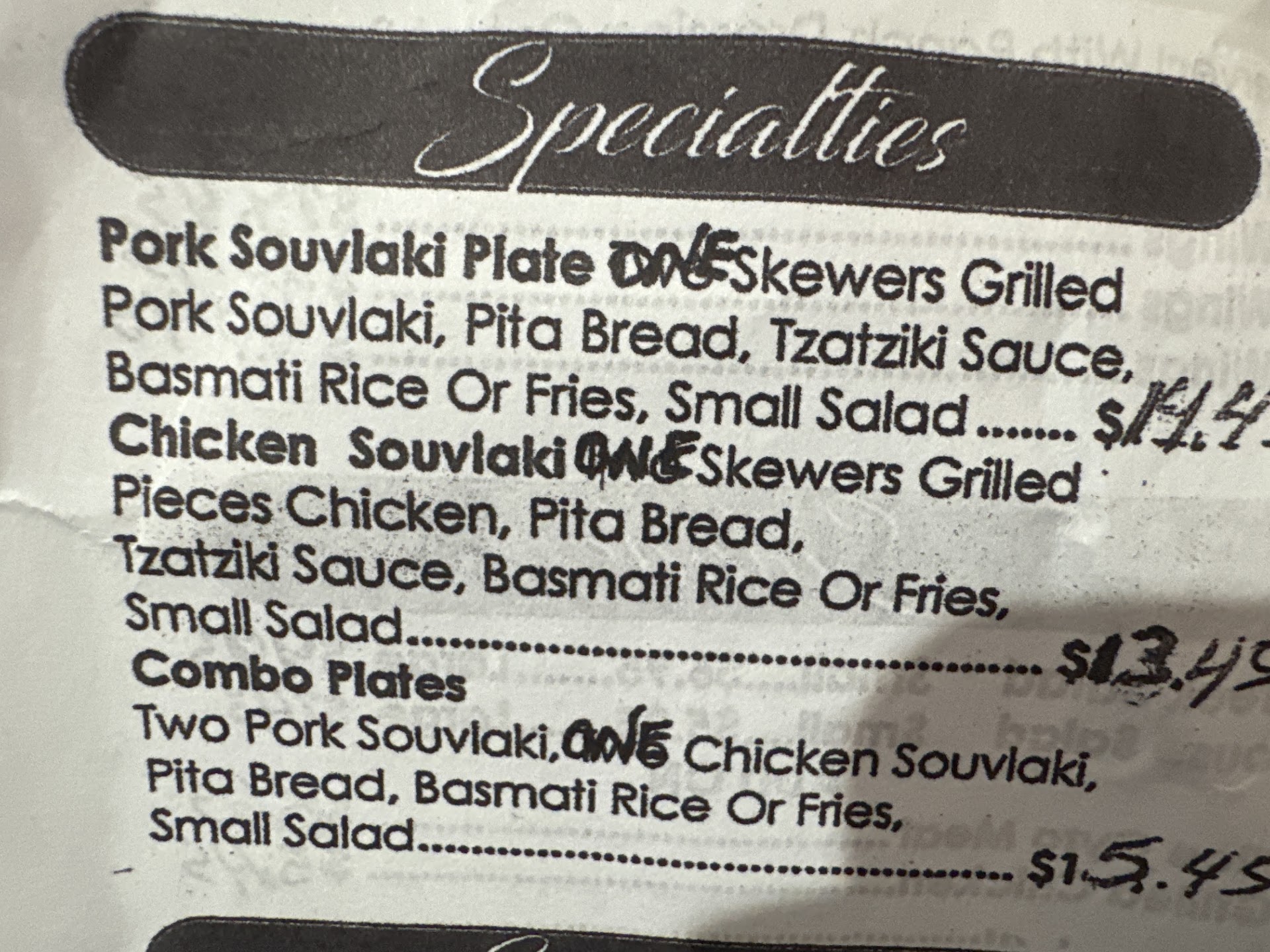 The Chicken Souvlaki was super dry and we didn’t love the smell. Wouldn’t order it again.