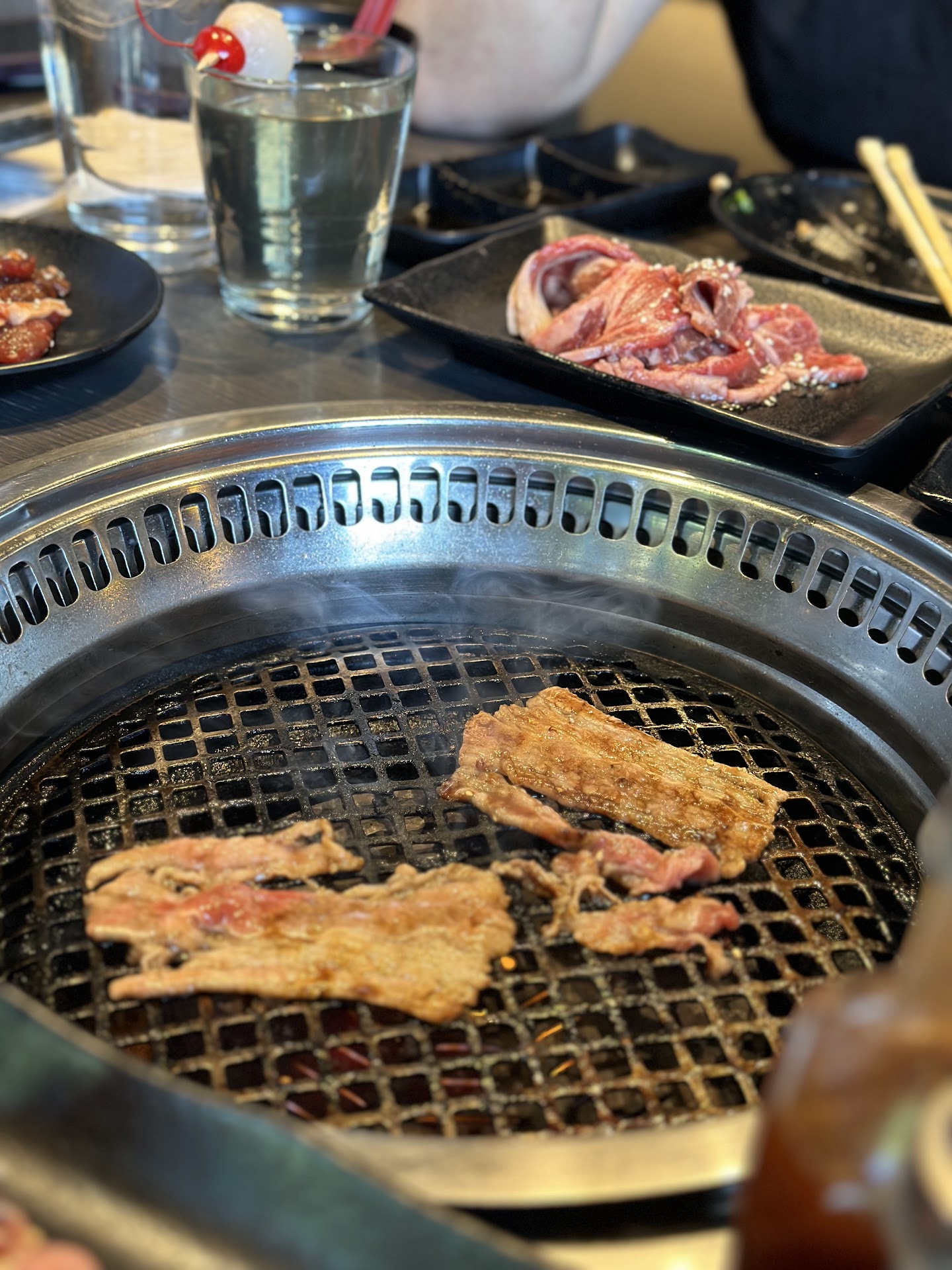 We were a party of 8, so we were seated with two grills. Our friend's grill was working perfectly fine, but ours.... it took 45 minutes to "steam" the beef on top. 20 minutes in, I flagged to a staff passing by and he said he'll get someone. 10 more minutes go by, I flagged it to the waitress who dropped off more meet, that we couldn't cook since we were still trying to cook our first plate of meat, and she said "oh it could be the skirt around the grill" and then took it off with her bare hands. That should've sounded the alarm bell to her that obviously our grill was not hot enough if she could touch something that had been in direct contact with it and not be hurt. Then 10 more minutes go by, no improvement and the beef on the grill was finally a safe temperature and we started on our next plate of beef. The restaurant recommends 45-90 seconds per side, and at that point we were at 40 minutes for just this plate of beef. Our waiter, who had not stopped at our table ONCE, since this all started, I had to flag him down after he dropped off something for the table next to us and tell him our grill wasn't working. He finally put his hand over the grill and realized, oh yes, something was wrong. He then grabbed the bus boy and had him help us. At this point, we're an hour into sitting down, have eaten one plate of meat, and technically are supposed to be kicked out in 30 minutes. The bus boy who came over to fix the grill had to use a toothpick to stick into individual flame spouts to clear our the crud and char that had been stuck and causing the flame to not come through, it was DISGUSTING. I flag that to the waiter and ask to see a manager.