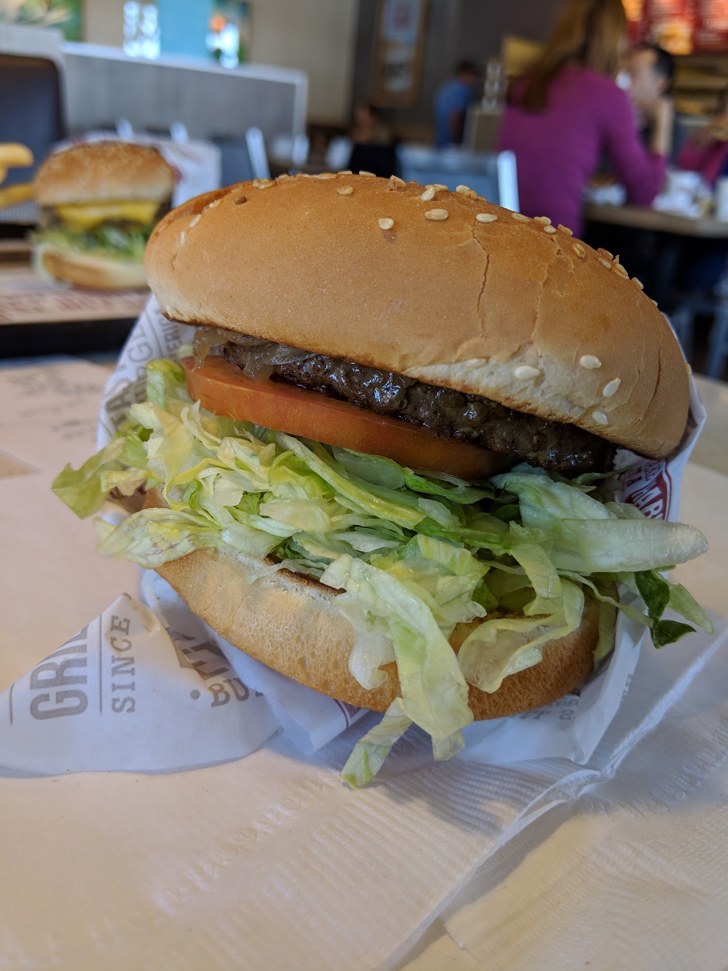 Read moreEats: Double Char lettuce wrapped. I've eaten here before and tried the other favorites such as the Mushroom Swiss Char, Sweet Potato Fries, and Onion Rings. It was the Monday lunch hour and the place was pretty occupied but not crowded by any means. The Double Char lettuce wrap was a solid 4 star with good flavor from the beef, and a balanced flavor pairing between the grilled onions and American cheese. My lettuce wrap could also be eaten by hand versus fork and spoon, which means the chef made sure that I could hold it up like a burger without all the contents leaking everywhere. It could have probably have the added flavor benefit from a sauce (think special spread from other chains), besides the standard mayo, but it was still tasty.