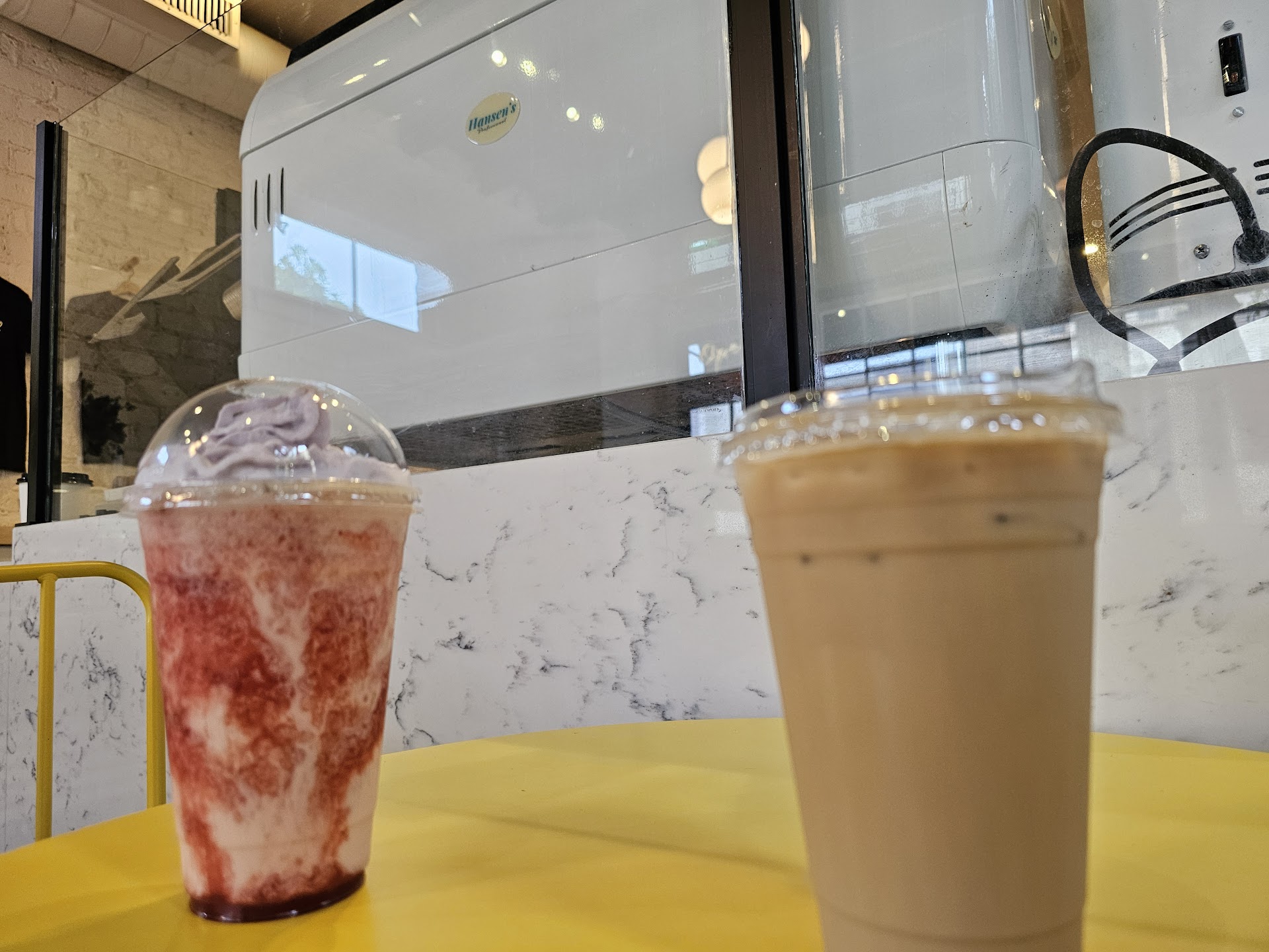 I got the Peach Mango Chia iced tea w/aloe and it was really solid. My husband pretty drank the whole thing. The Ube Upside-Down Pie was so delicious, the Ube Crinkle not so much (too dry).