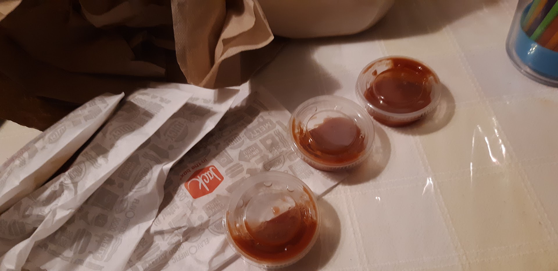 Read moreI Purchased 2 tacos, a buttery jack no cheese ( which I said specifically), spicy chicken sandwich, breakfast jack, small fry and a vanilla shake. Breakfast Jack was the only hot, fresh item. The fries, two tacos, patty for the buttery jack and the chicken were all cold and stale. The buttery jack was ridiculously dry and the breading on the chicken patty was cooked so long it was hard to make it worse it was cold. The fries weren't even cooked fresh. 21.00 gone. My dog ate the buttery jack, O dran the shake and the rest was one bite then trashed. For shame... At least...