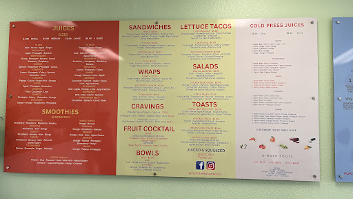 Words cannot begin to describe how much I love this place! I found this place a day before and told my coworkers about it, so I went to this Juice bar with all of their orders. The woman who took my orders (I need to get her name next time I go because I will be back!) was so pleasant and attentive. I placed five separate orders, and I recommend calling in if you are doing carryout or are in a rush. I order so much food that the gentleman who worked there offered to help me carry it all to my car. I got the classic sandwich, pineapple with chili and mango tango. All fresh and amazing! I'm trying to eat healthier, but Jason's Deli near my work isn't cutting it. My classic sandwich from Juiced & Squeezed was light and fresh but still filling. The mango tango was nice and natural, with no added sugars. The pineapple and chili had a nice kick to it! This place truly...