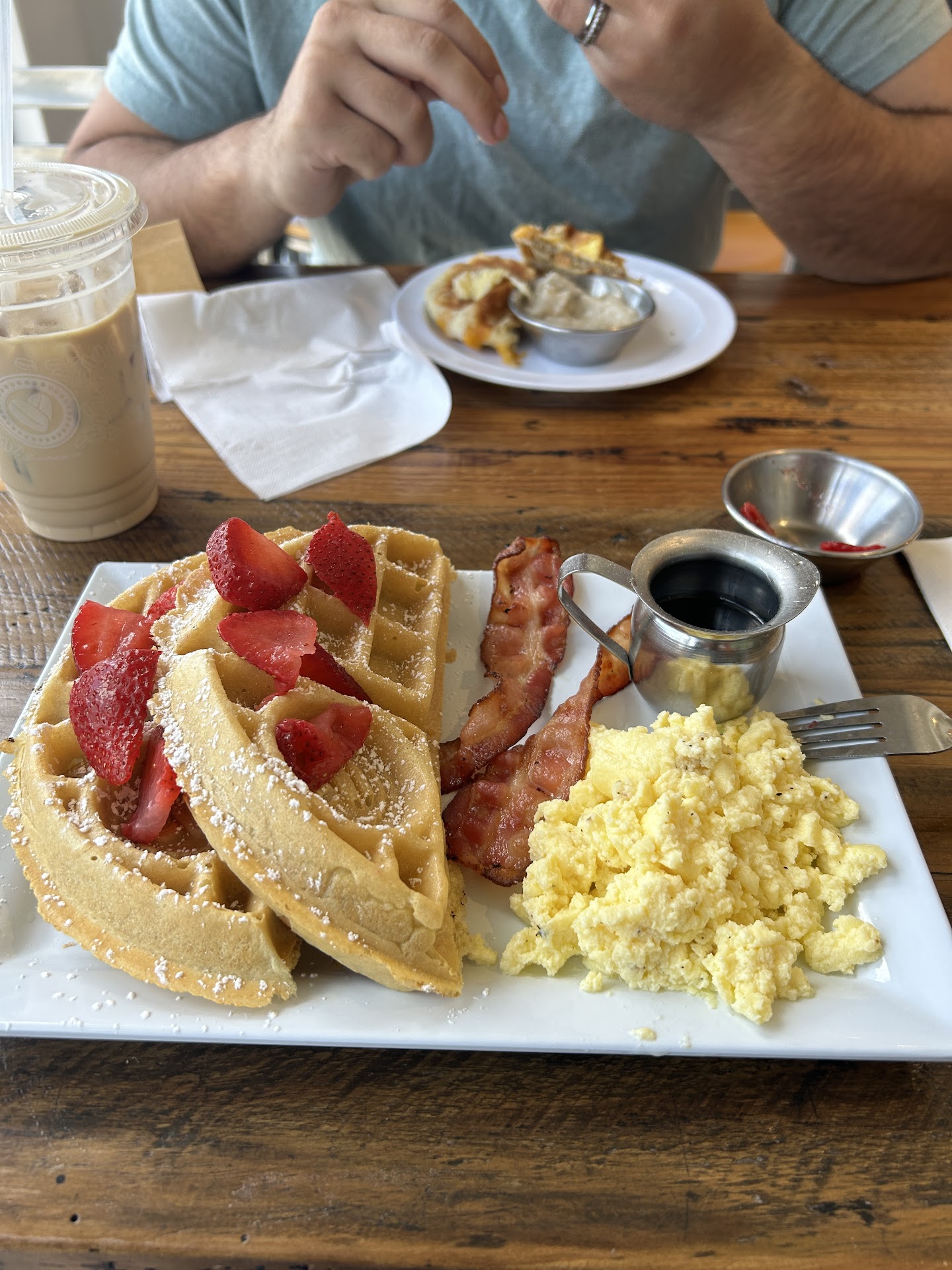 Just Love Coffee on Fairmont has quickly become one of my favorite cozy spots — not just because the food and drinks are great, but because everything they serve comes with the cutest little waffle pattern! It’s their signature, and it makes even a simple sandwich or omelette feel extra fun and special.