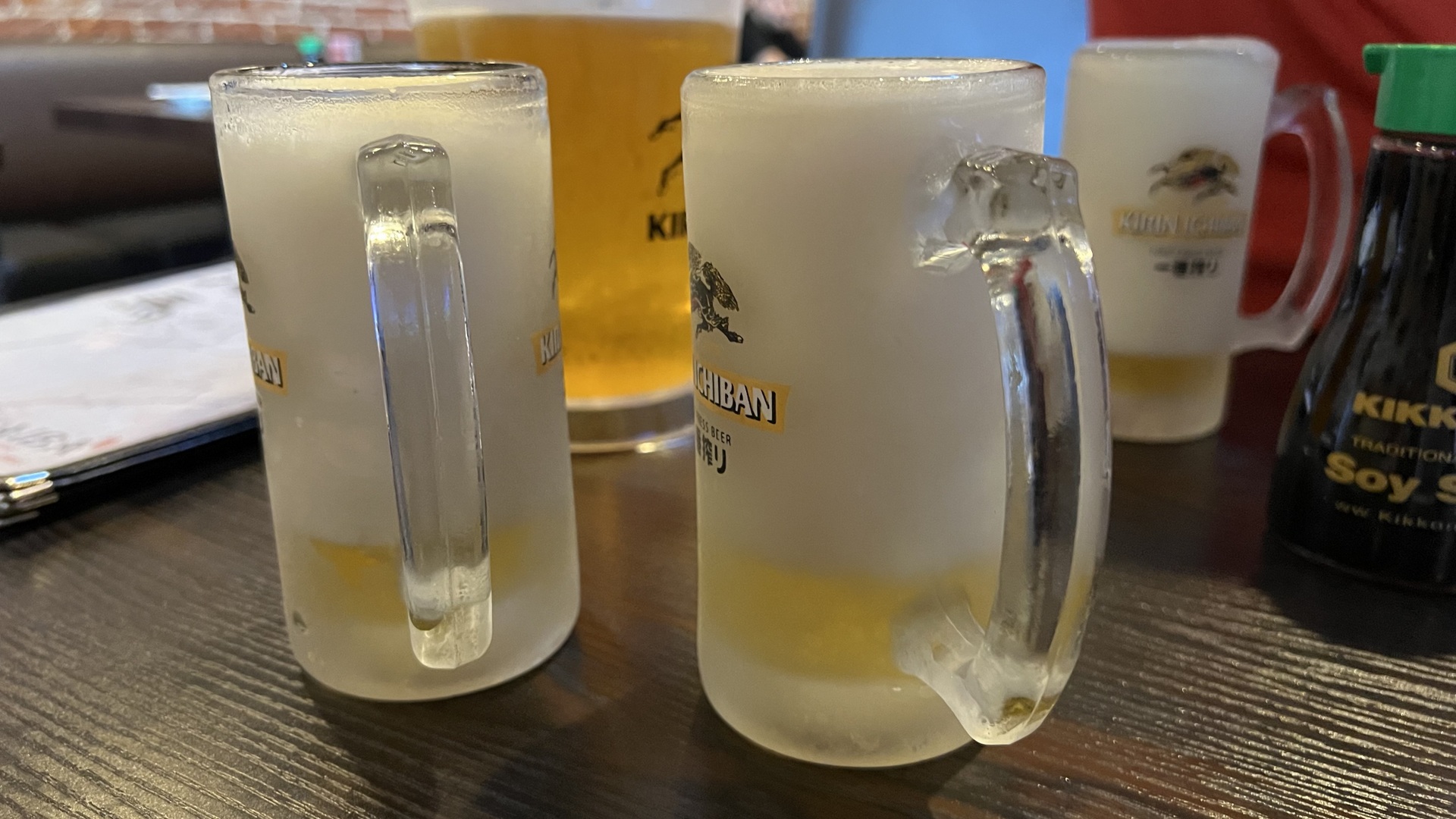 Good point: the beer cup was frozen, and they replaced it with a new one for each refill.