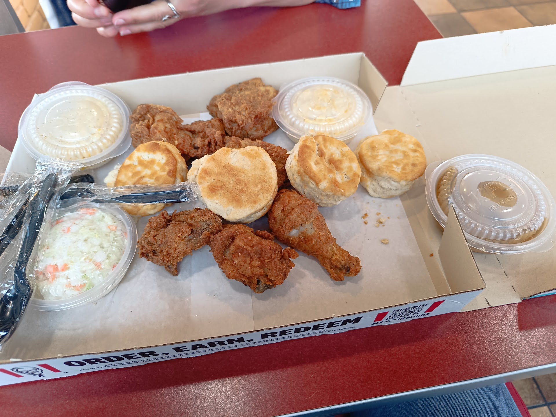 Overpriced. According to one of their employees, this owner makes his own,deals and prices. I paid for an extra biscuit, didn't get it but was all the way across town, so not wasting my time to go back. If you pay $3 for a side mashed potatoes and gravy, you get one of the itty bitty portions that come in the box when all the other KFCs give you the normal small size. Also, if you're fast food and don't have chicken breasts cooked and make the customer wait in the drive thru parking lot 10 min while it cooks, what's the point?!? Typical cheap owner who only cares about their own profit, not quality or customers. Not going back again. So guess what? You lose $ for sure now...