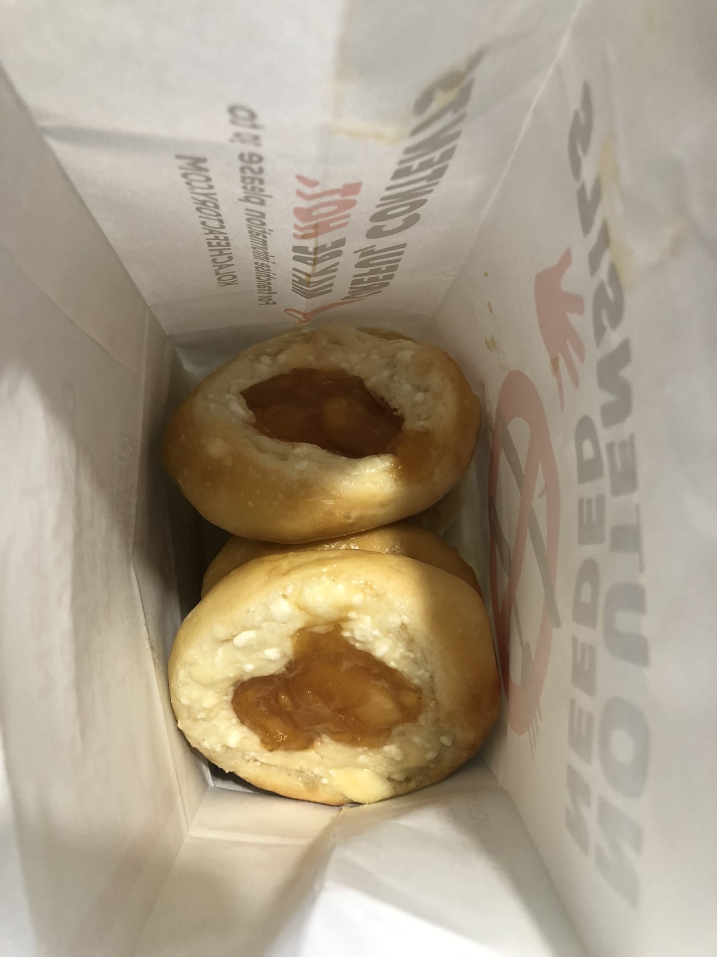 Read moreOwner is Middle Eastern who has not adapted to the American culture, nor have they trained their employees of common practices. I order 5 caramel apple kolaches. The worker is putting them all in a bag, stacked on top of each other. I express my dismay at all the kolaches being stacked on top with the bottom portion now covered in the apple and caramel of the one below it. This is not proper for me to take to the office, expecting people to have kolaches so messy they can't properly eat them at work. I asked the girl if she thought it was a good idea to stack all the kolaches on top so that people will have fruit mashed on the bottom. Her lack of common sense told her to keep adding them to the bag instead of stopping at kolache 3 and getting a box. Nope. I bag full of mess is what I got. Why go back? The owner hates it when you bring in a coupon, so he changed the coupon to where no...