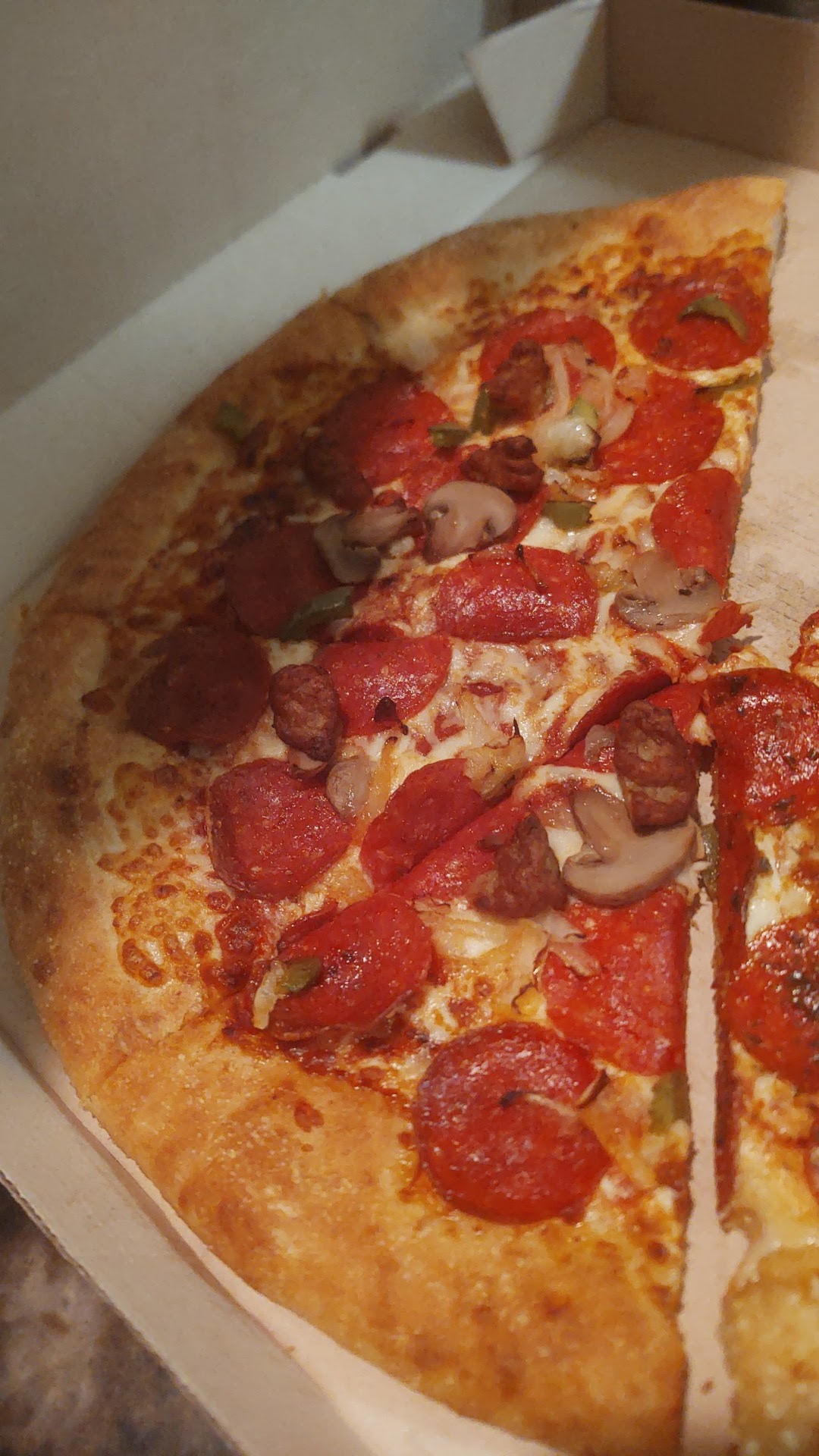 Read moreSo this place wasn't the worst but certainly not the best. Service was alright, little slow but the waiting wasn't too long for my order. Another location, closer to where I live does have a long wait more times than not but this location wasnt as bad on the waiting part. I'm not so sure that was good thing. I ordered 3 large hot n ready and I had no wait time meaning they had them ready. So I take the pizza home and first off they were completely stale like they'd been there for while so the taste was taken as well. On top of that they did not cut them deep enough; it was to the point where you just grab one slice and the whole pizza goes with you. The other location does make you wait but every time their pizza is always fresh and hot and ready! Would I come back here, again? Of course I would just to give them another try, maybe I caught them...