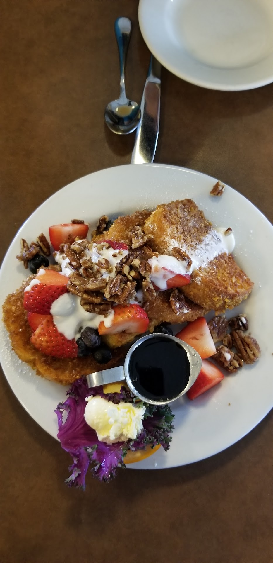 Amazing: French Toast with the works. It was our appetizer :) Possibly the best I've had. Perfectly cooked, fresh and flavorful fruit, quality syrup and ingredients.