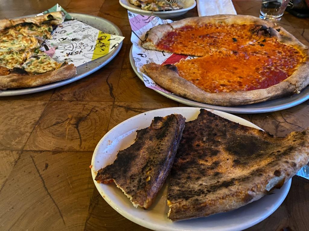 The crust is thin and cracker-like. Slightly charred from the wood-fired oven, the crust gives a slight snap when you bite into it. As you get to the back of your slice, you’re greeted by a flavorful crust that’s pretty light but did hurt my jaw as I got closer to finishing the pie. I’m not sure if that was because the crust was cooling or if my jaw was tired.