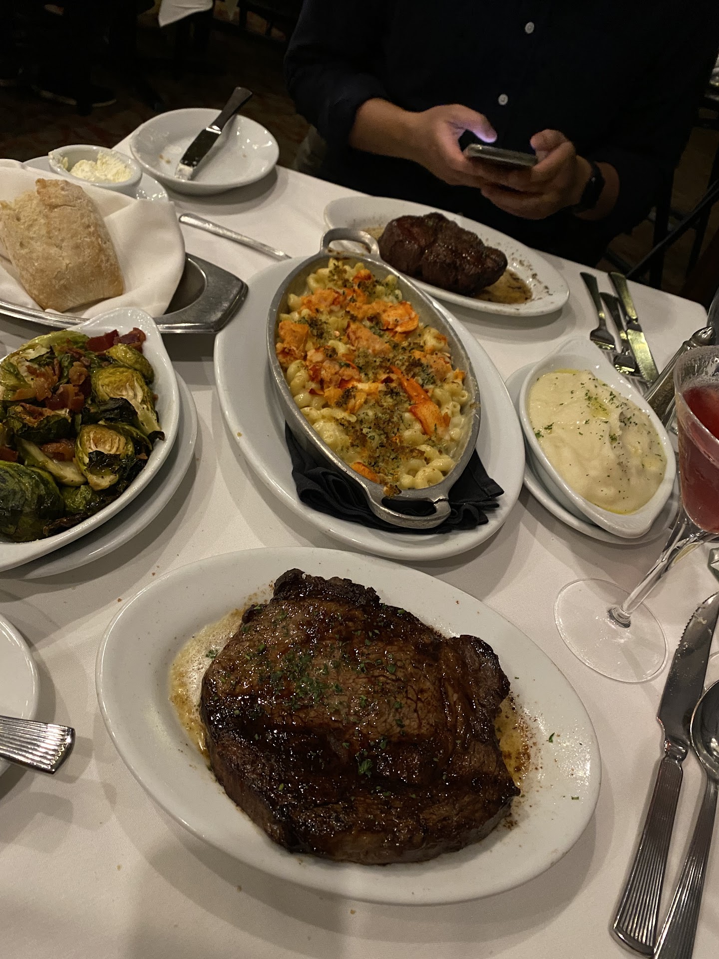 As we progressed through the courses, each dish was a culinary delight. The Bone-In Filet was incredibly tender and flavorful, while the Garlic Crusted Sea Bass and Lobster Mac & Cheese were absolute showstoppers. The Tomahawk Ribeye was a true highlight of the evening, a massive 40 oz USDA prime bone-in ribeye that was beautifully marbled and full of flavor.